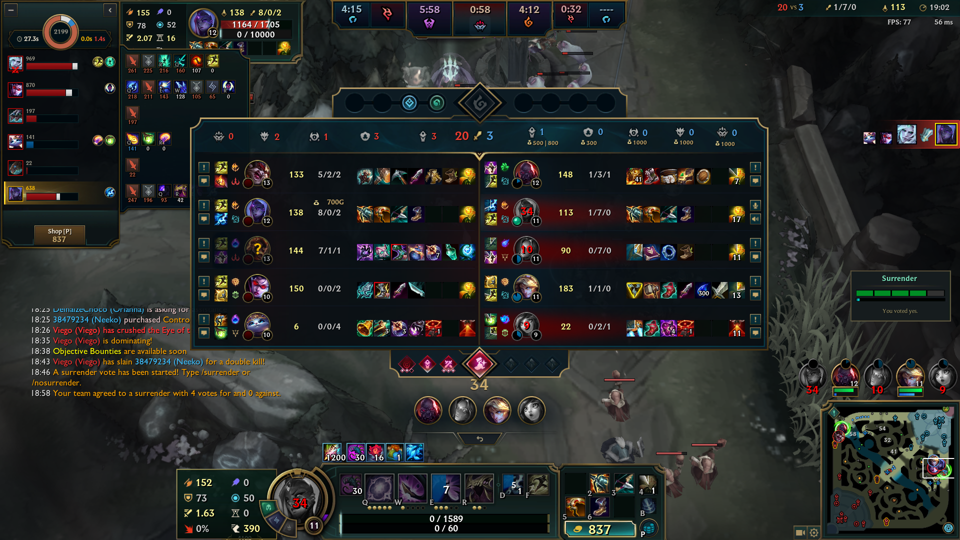 Играешь на боте - делаешь трипл киллы, сносишь башни - в игре абсолютно и полностью отсутствует лес и мид. Их нет, они своими действиями играют на стороне врага. Атахан забрали только потому что троих около него забрали. Единственный полезный смайт от эвелины за всю игру. Все драконы, герольды, бароны, всё мимо, на большинство даже подвижек не было. Дракон живой снизу, вижен есть - хуета фармит лес сверху. Барон сверху, вижен есть, враги в другом месте рассредоточены, хуета фармит кемпы на боте. Спавнится элдер через 10 секунд - хуета просто бежит, откисает и строчит в чат "wp, get elder and end".