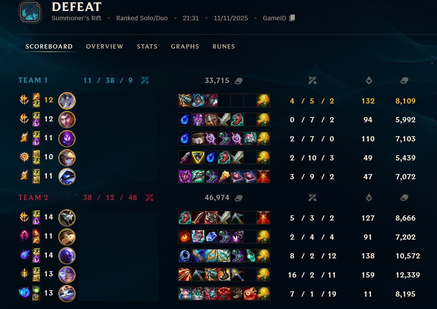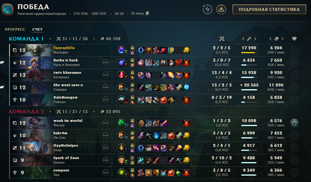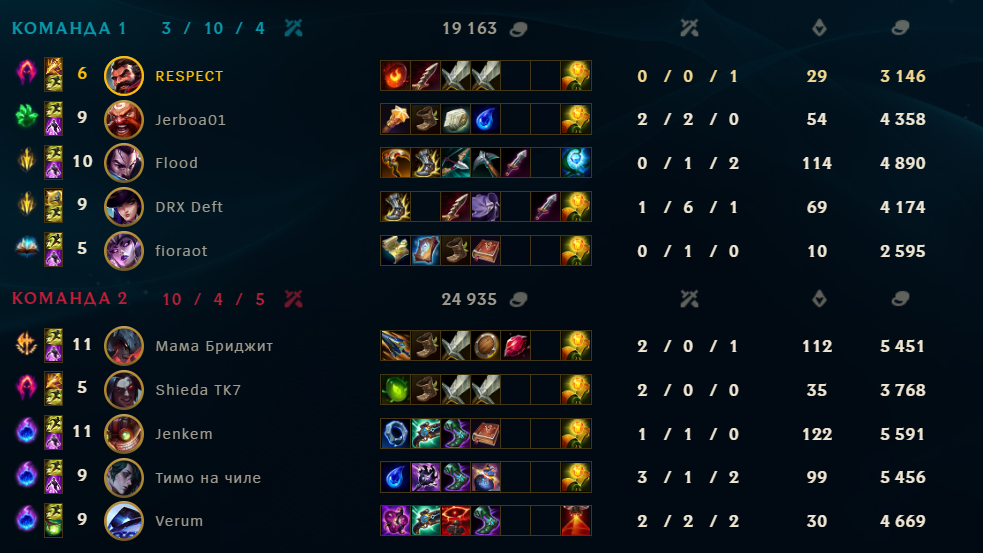 вот и 9 катуля) одна лучше другой просто, главное что прям КАЖДАЯ игра автолуз либо каким то чудом камбек параши, могли бы хоть для справедливости побольше победок дать, я еще до этого проебал 8 игр, мне сритосня просто ебанула 6 автовинов, но почему то теперь я расплачиваюсь за это уже 9 игру подряд и те уебища, которых я топтал играют уже со мной... У меня же память свежая еще, вот вчера побеждал, я помню как там мувались тиммейты, какой тимплей был, я не прошу разьебывать лайны, но просто ну там подойти нажать кнопки нормально, реагировать на пинги... но тут совсем больные твари