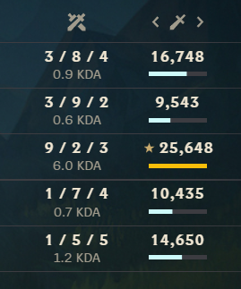 хз че тут сказать, просто весь день не идут игры даже на леснике. ну, я не виню тиму, я реально хуево играю прост и не знаю почему. ничего не получается. как же я хочу просто стабильно хотя бы 8/5/5 кда иметь или подобное а не так что просто весь день отсосов по 0 9. реально грустно как-то что одним дано все а я рожден неспособным играть в лигу