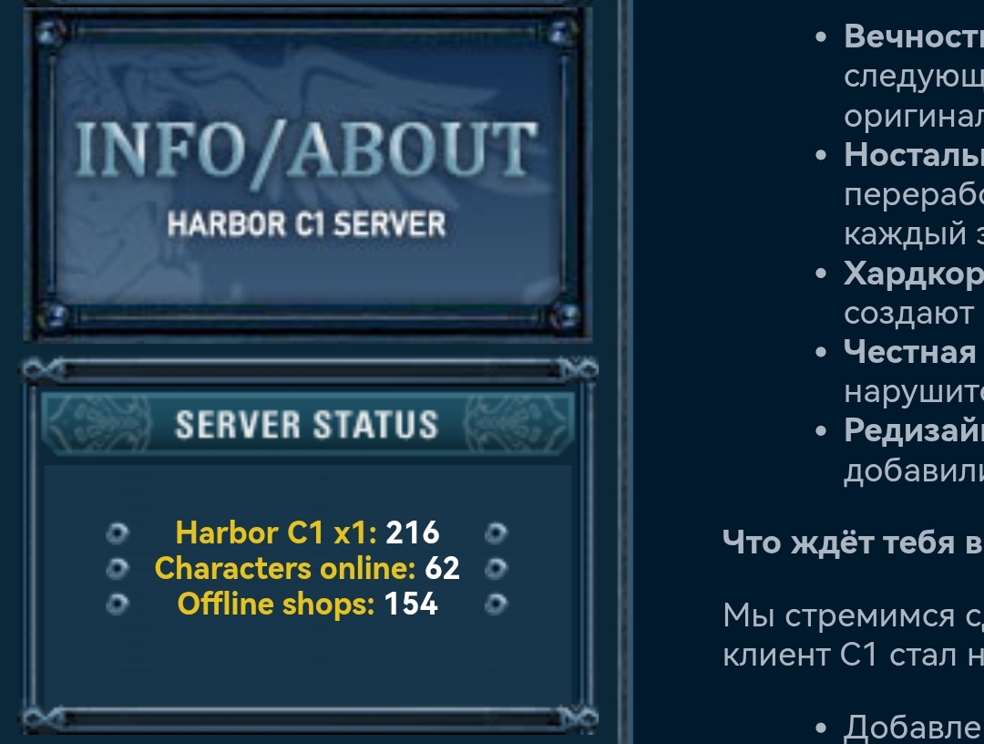 Моё мнение таково, пробелема сруча это то, что они уже заебались тянуть лямку и просто погнали за деньгами. Если бы он выкатили графоний, но стконцепцией харбора на основе локаций с1, впили туда наработки братков заднеприводных. Сделали бы ставку на Олимп, осады, возможно некие квесты ежедневные с проследующем добавлением локаций с хроник выше, у них бы было время их проработать это были бы прям полноценные обновления которые бы ждали, но пока ждали было бы чем заняться. Думаю даже рейты ниже х1, но с каким то ежедневным контентом дали бы жизнь. Но получилось что имеем, каждый ради бабок готов нарушить принципы, я их не обвиняю, мивину тоже забывает кушать