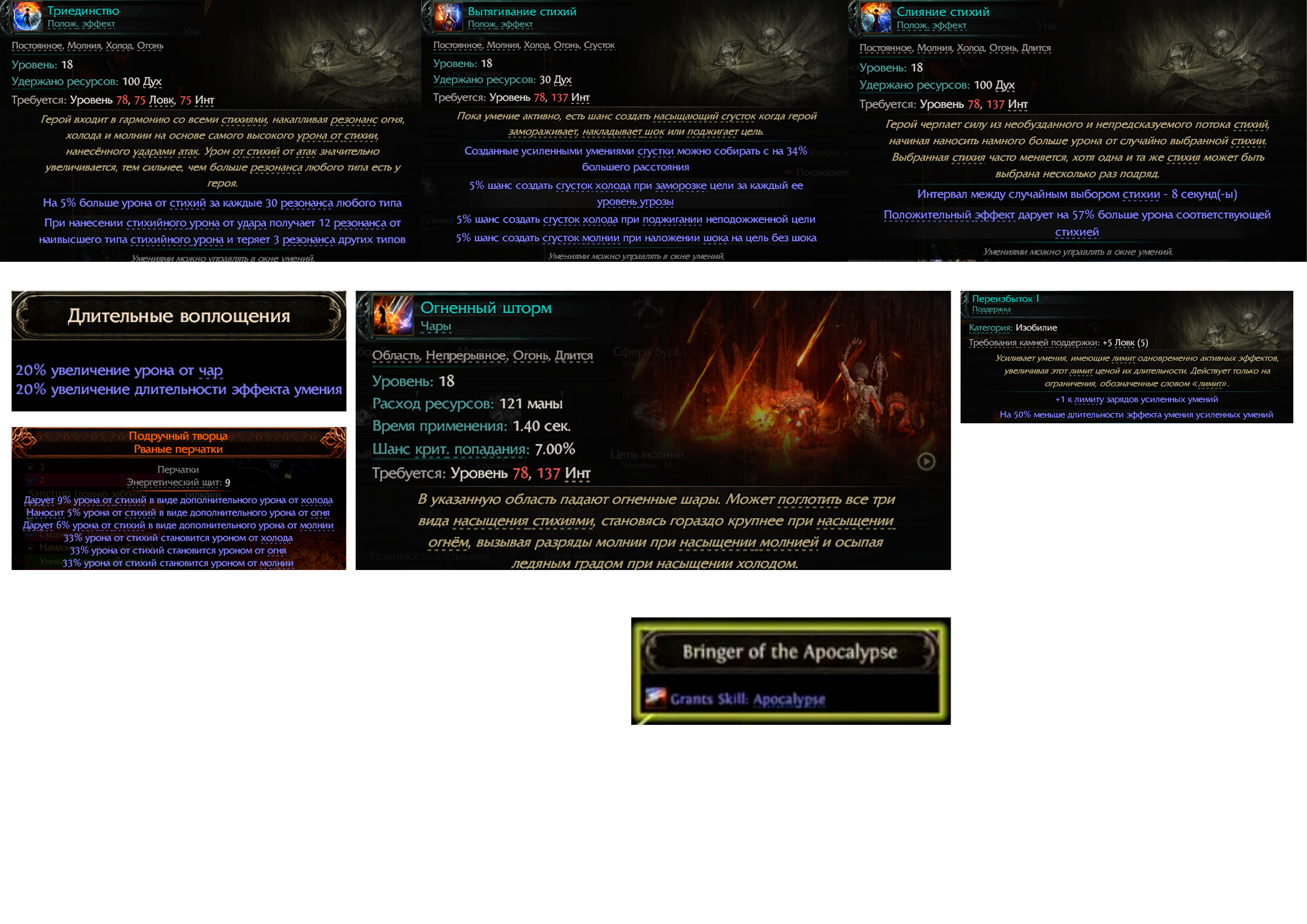 >>50534428 А еще там какой то спелл есть, апокалипсис, который должен охуительно играться с триединством. В общем в этой лиге стартую на всех стихиях одновременно.