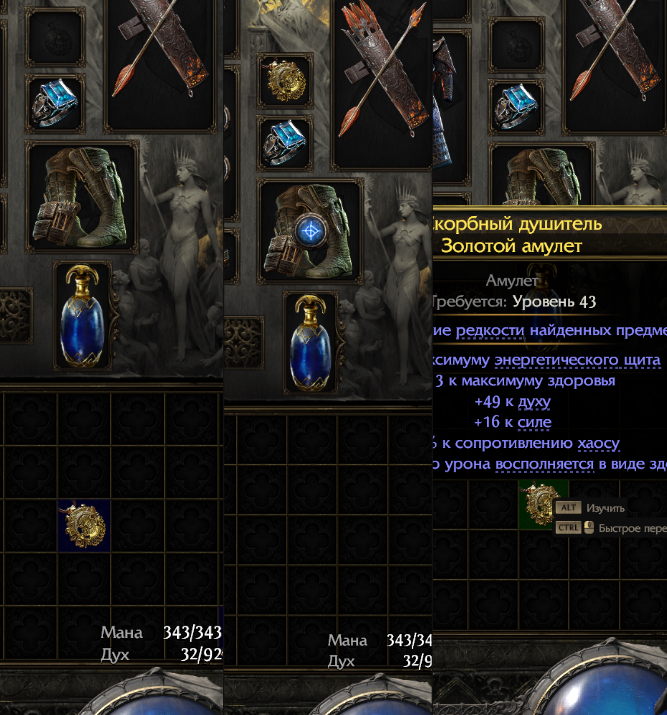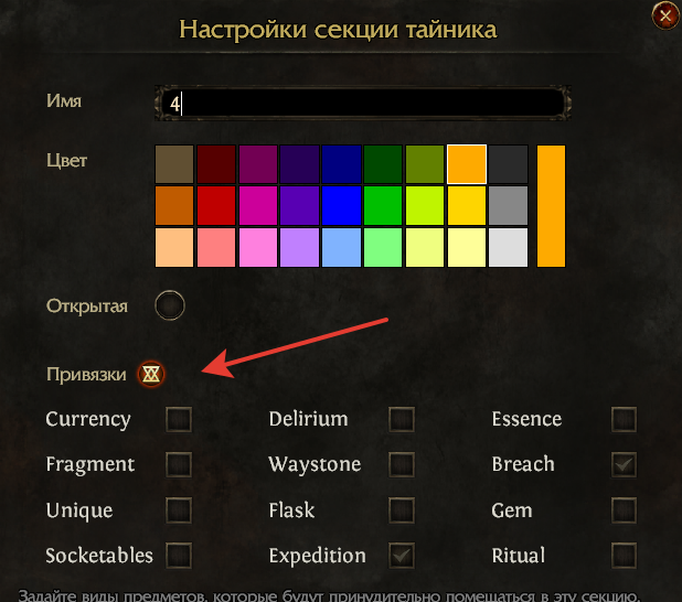 >>50537700 Если у тебя много одинаковой валюты допустим 200экс в 10 стопках, ты просто с зажатым ктрл нажимаешь по одной стопке правой кнопкой и все стопки улетают в стеш. А для других штук, типа масел, рун, оменов с ритуала, катализаторов с бричей есть собственные вкладки, и если там галочку поставить что она для них, то так же будет автоматом в эти вкладки улетать
