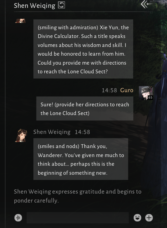 Но эта фигня с аи чат ботом прикольная кста, но чуть недоработанная. По моему было бы прикольней общайся ты во всех квестах сразу ручками