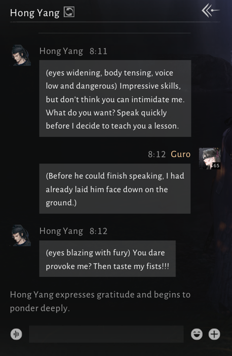 >>50579845 Ко мне вчера залетел хантер, а я тюрячке прятался как ссыкло, т.к. там нельзя атаковать. Он попытался меня атаковать, я услышал как он вынимает оружие и уже хотел нажать на логаут, т.к. подумал что пизда мне, но нет, он так и не смог вынуть свой клинок. Я уже хотел улюлюкать как шакал в злорадстве, но он подошёл ко мне и сделал поклон. Я охуел немного и почему-то тоже сделал поклон. Он вышел, я за ним. Выйдя за забор тюряги, где можно атаковать, он не напал на меня а ждал минуту пока не достану свой меч. Я со слезами на глазах атаковал первым. Он не юзал ничего кроме одного меча. Я дал ему бой и добровольно решил отсидеть срок.
