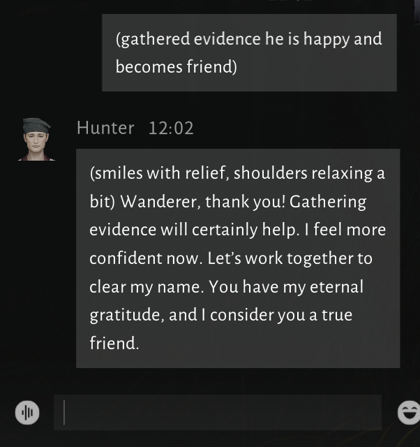 Можно давать всякие штуки типо "передаю тебе лекарственное растение" или чет такое. Можно типо "ходить" с ним и искать пропавшего сына, где ты легко можешь указать что нашел следы и привести его в воображении к месту в стречи