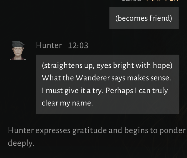 >>50581406 Я вообще не понял этой хуйни, просто шел по маркерам энкаунтера уже будучи в секте, всегда начинаю отслеживать блмжайший энкаунтер, вдруг происходит вот эта хуйня, отпиздил этих додиков, запомнились тем что у них стамины нету, потом какогото позера, еще помню вернулся к челу у сундука думал ну теперь наверно открою сундук то, не нихуя. Квесты кстати не пропадали вроде, по крайней мере у меня несколько квестов висит чуть ли не с начала игры, правда некоторые бывает отваливаются, по ходу по времени както. А так хули квест как квест, немного прихуел когда меня дама в шляпке наяала голыми руками в землю вминать, но позже убедился что для нпс это обычное дело.