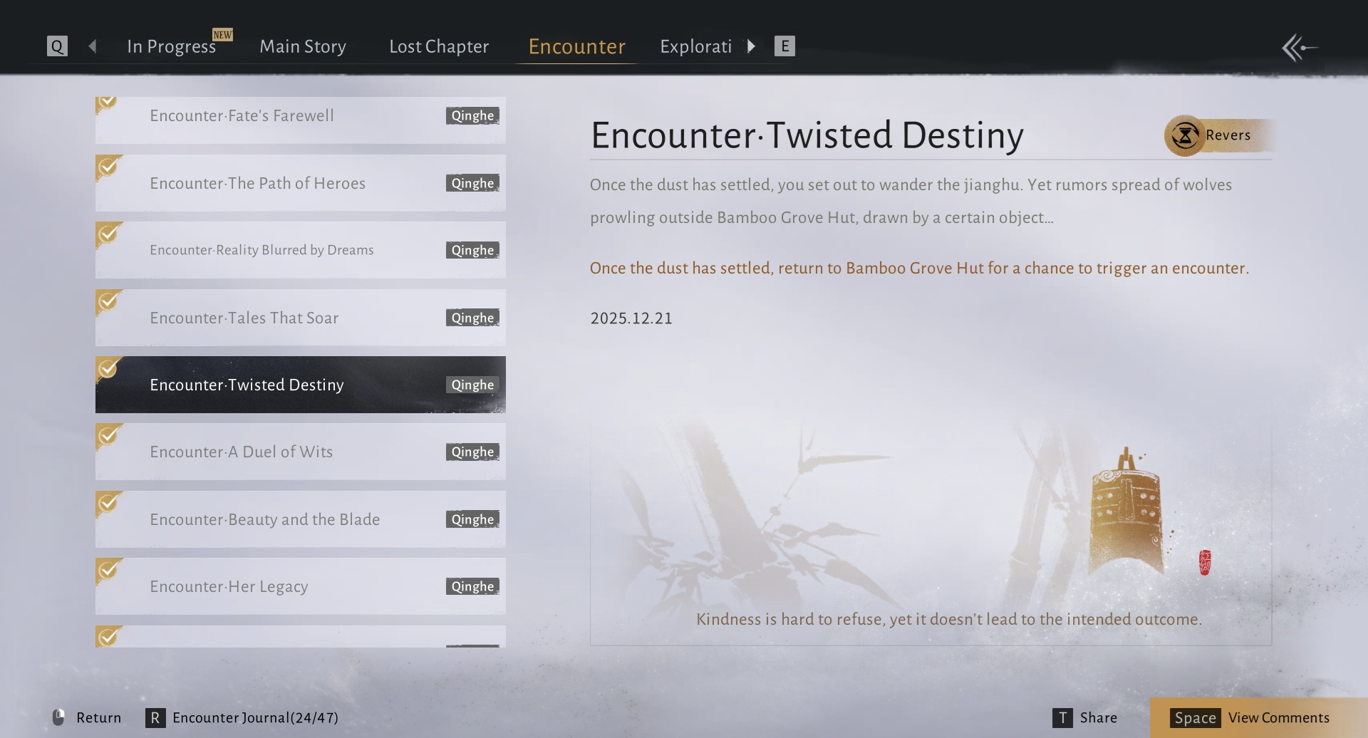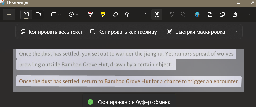 Когда утихнет пыль, вы отправитесь бродить по Цзянху. Однако поползут слухи о волках, рыскающих возле хижины в бамбуковой роще, привлечённых неким предметом…