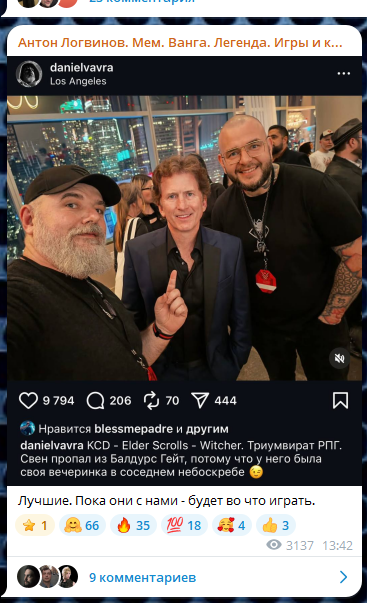 После TGA 2025 у меня осталось странное послевкусие из-за того, что Старфилд осталась без наград, а Тодд выглядел подавленным прямо на церемонии. А потом его инстаграм заполнился фото бургеров с колой, пирожных и кофе под грустную музыку. Я не берусь делать выводы о состоянии человека. Но ощущение, что ему сейчас непросто, считывается без слов.