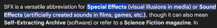 >>50592047 > очень странно, что ты не знаешь что это такое Я знаю, что SFX - это Sound Effects, а для визуальных эффектов есть VFX - Visual Effects, и именно такие обозначения используются в разработке. Ты сам переназначаешь термины, а потом удивляешься, что тебя никто не понимает. Даже для Старфилда придумал какие-то "индуры" в своей больной башке, хотя в играх Беседки уже 15 лет есть интерьеры и экстерьеры, это блять официальные технические названия. > генератор лиц > немокапные анимации У той же Беседки это всё было в Скайриме в 2011, алло. Сделали больше ползунков, больше мимики, всё качественнее, запекли на порядки больше объёмов, использовали более умные форматы. И? Это всё старые технологии, как если бы взять лопату из нано-материалов вместо железной, это всё равно лопата, и ты хуяришь ею руками.