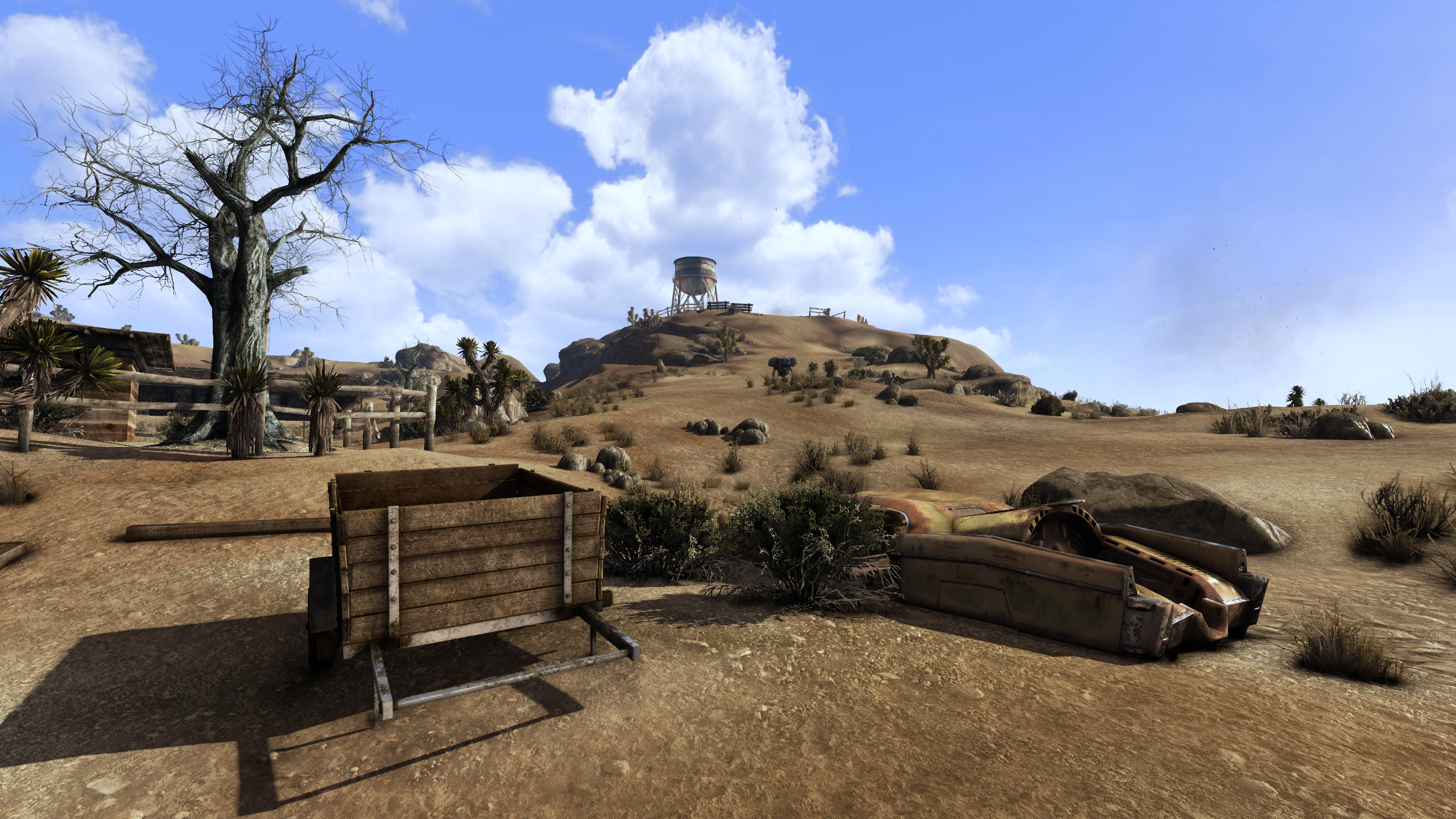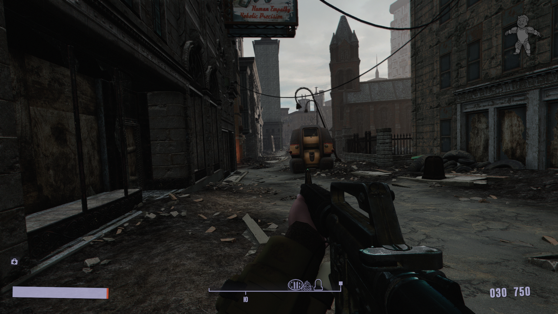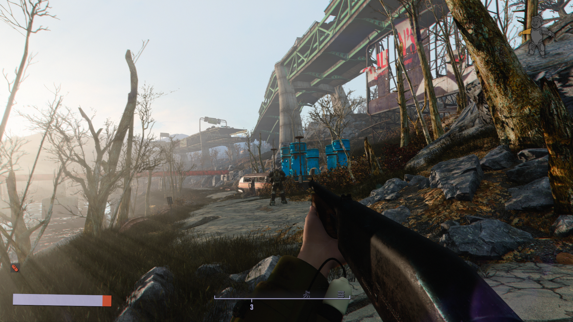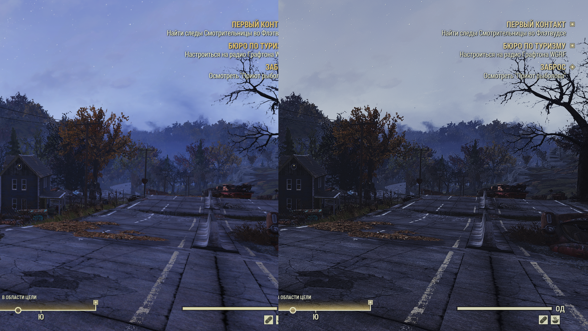 Во-вторых, тоддлер почему-то любит мыло. Возможно вытираны фаллаутов привыкли или им не заметно, но когда вы заходите в игру, первое, что вам бросается в глаза, это отсутствие резкости в картинке. Ёбаное мыло и яркие аляповатые цвета. В стартовой локации-убежище это ещё ладно, но вот когда выходишь... мамма мия, Тодд, ты охуел? Сначала я потыкался по советам в сети и изменял ini-файл крутя настройки туда-сюда, получилось плохо. Вся проблема в сглаживании, по умолчанию это ТАА и если его отключить или изменить, то будет кошмар с лесенками и пикселями. Опять же, помогло шаровое видео с ютуба от некоего Бородули, спасибо ему. Всё понятно и просто объяснено, сделал как у него и Фаллаут внезапно стал похож на игру, в которую можно играть. Особо отмечу решейд, простейшее изменение в изображении даёт картинку без мыла и без каких-либо проблем с производительностью. Как-будто рендер игры подняли с 720 до 1080, охуеть. Вы посмотрите на скрины было - стало.
