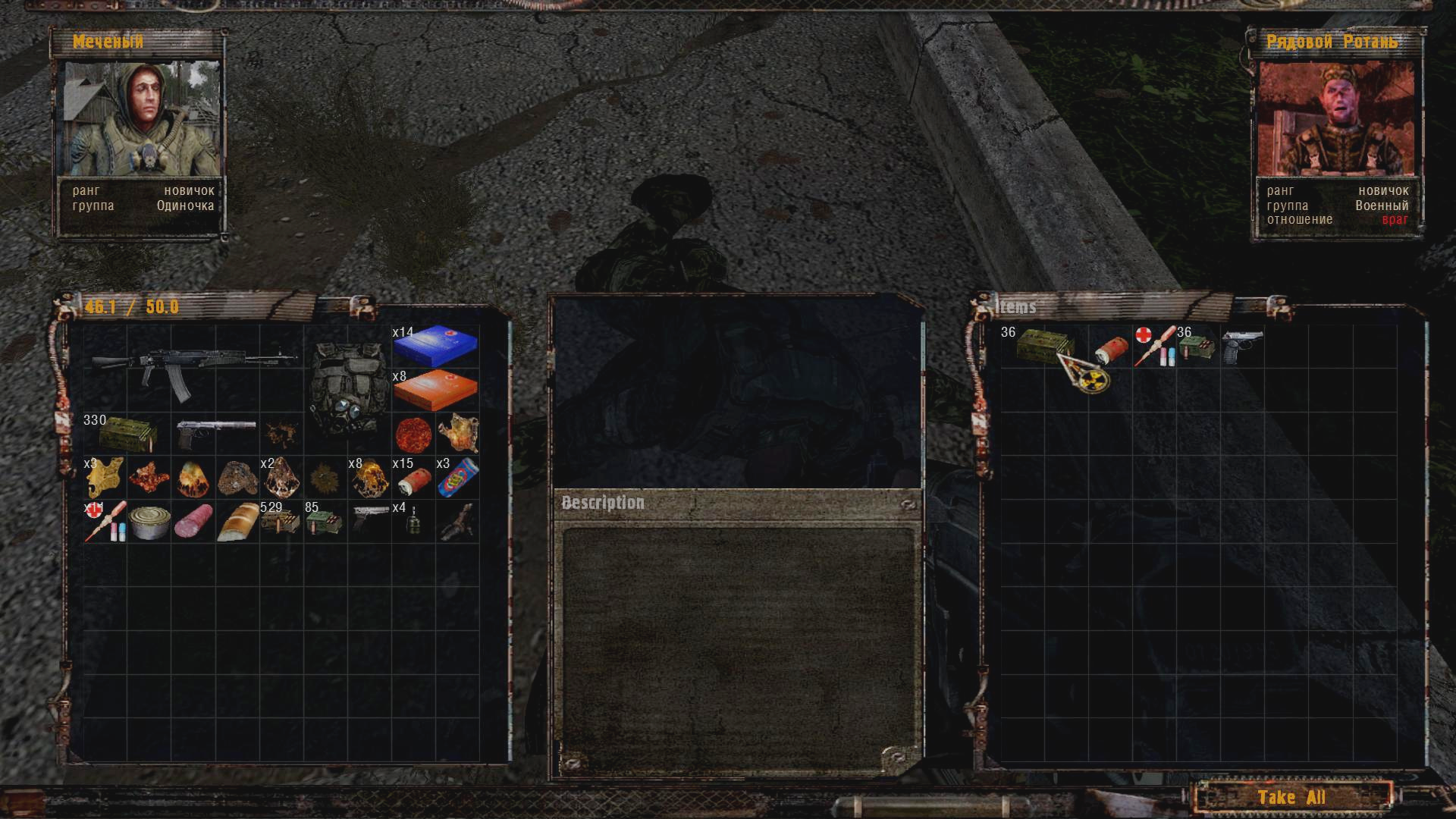 Бленд так я и не понял как умер. Будто обычный нпс упал с 1 пульки, мда. Ара немного продержался, но очередь в лицо с пулемёта не выдержал. С него кстати броник хоть выпал, заебок