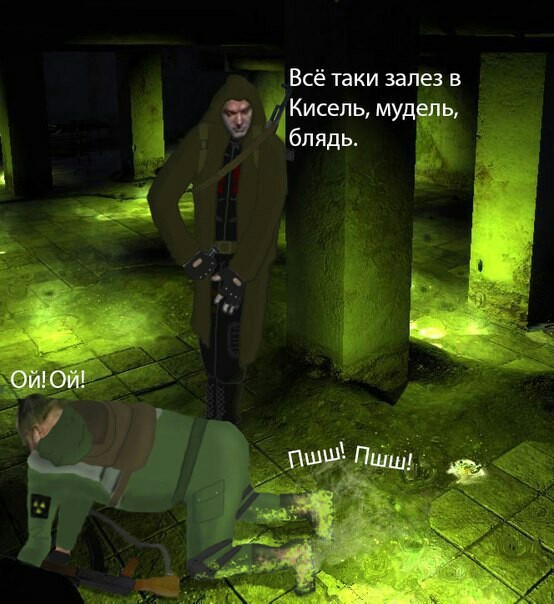 Сбежала Хип со Складов, и наткнулась прямо на контролера. Выстрелила из своего ПМ - не попала, еще выстрел - опять промах. Расстреляла весь магазин - а контролер продолжает идти прямо на нее. Что делать? Достаёт Хип дрожащими руками нож и ошалело смотрит на мутанта. И тут контролер говорит: - Девочка, тебе щас не нож, а вазелин больше нужен.