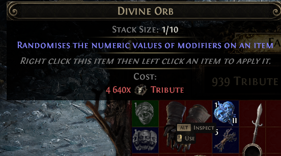 We also had some crafting benches for Exalting, Vaaling and Alchemy that didn’t allow you to take their craft as currency. We didn’t want you to be able to take these as currency until after the events at the end of Act 3, but this never got implemented. But now: