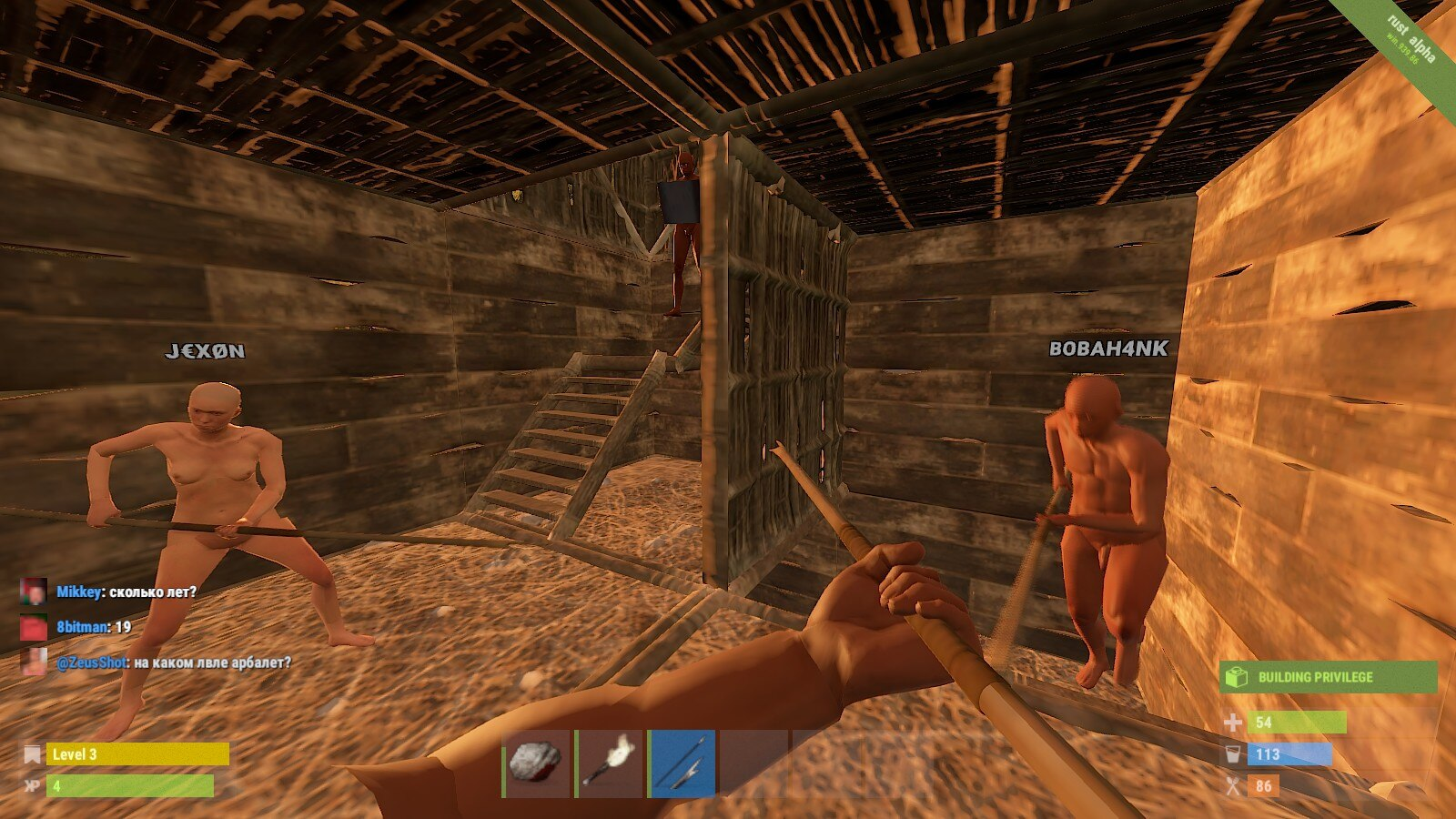 Похуй на умение стрелять или что-то типа того, кого больше и у кого верстак круче, тот и победио, нужно просто стак побольше и бегать ебать и рейдить всех. Игра не о скилле.