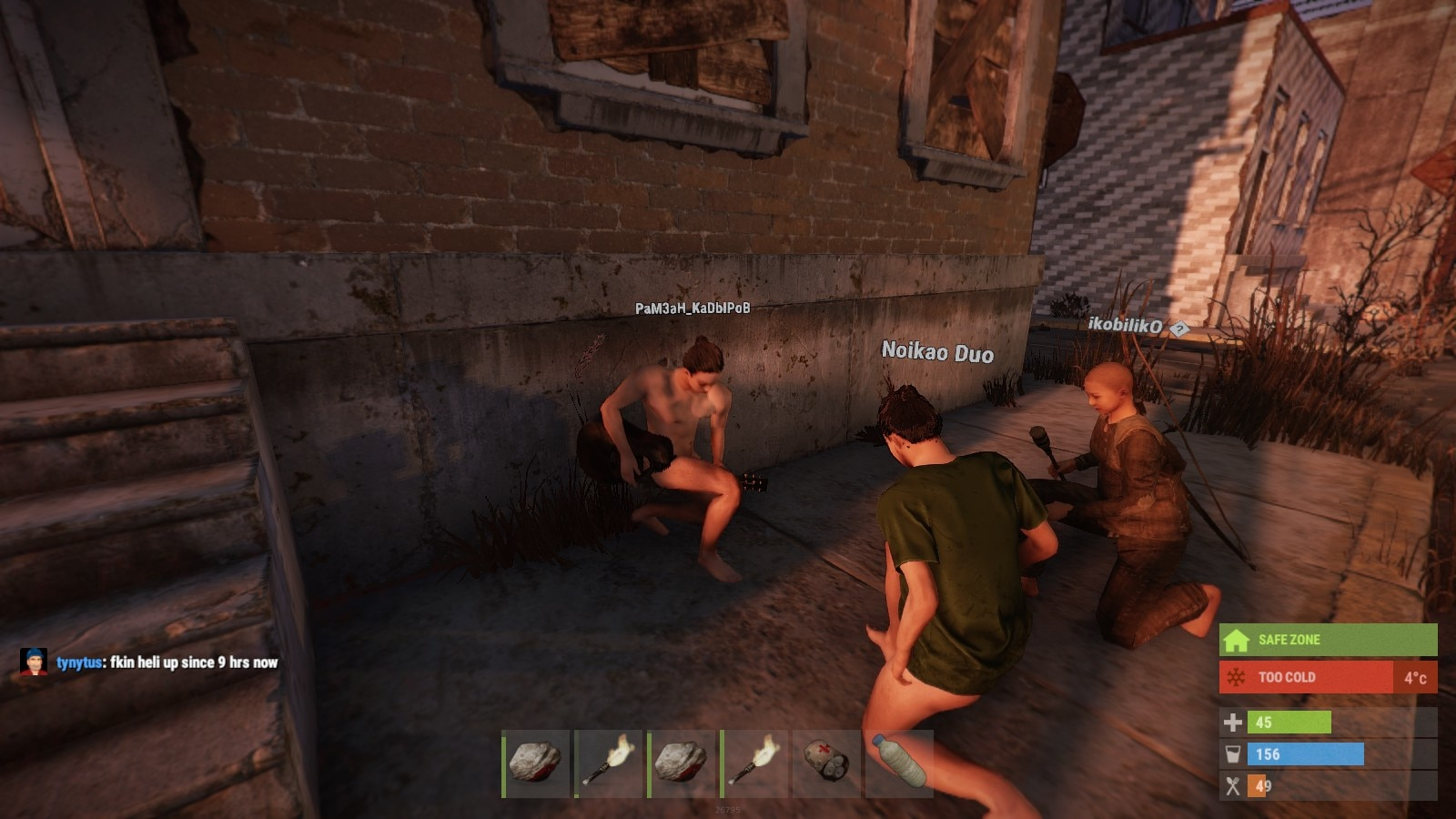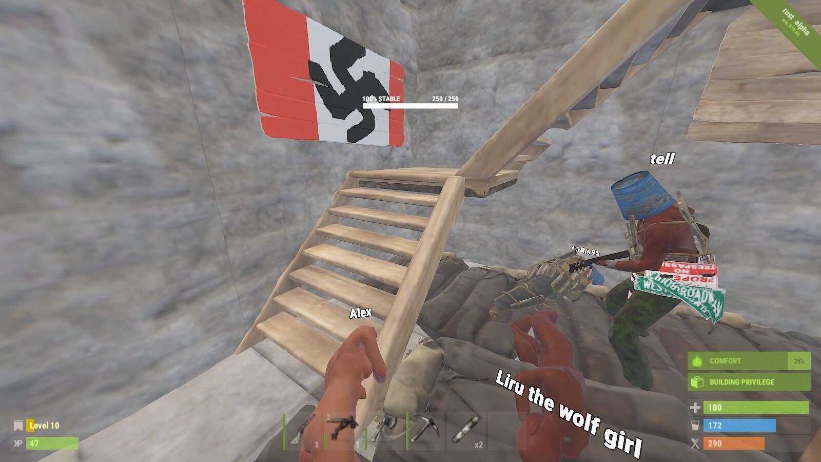 >>47907112 Ищи клан. Бегай голым по пляжу с криками "го тим". Попробуй прибиться к "деревне новичков". Раст это мир примитивных племен. Что бы выжить одиночке он должен быть очень сильным игроком. Ты должен быть и прожаренным строителем и крутым комбатером.