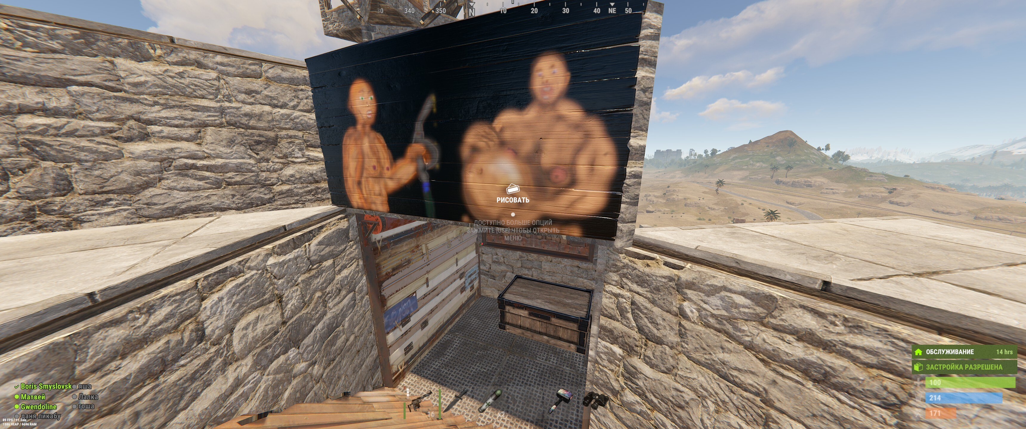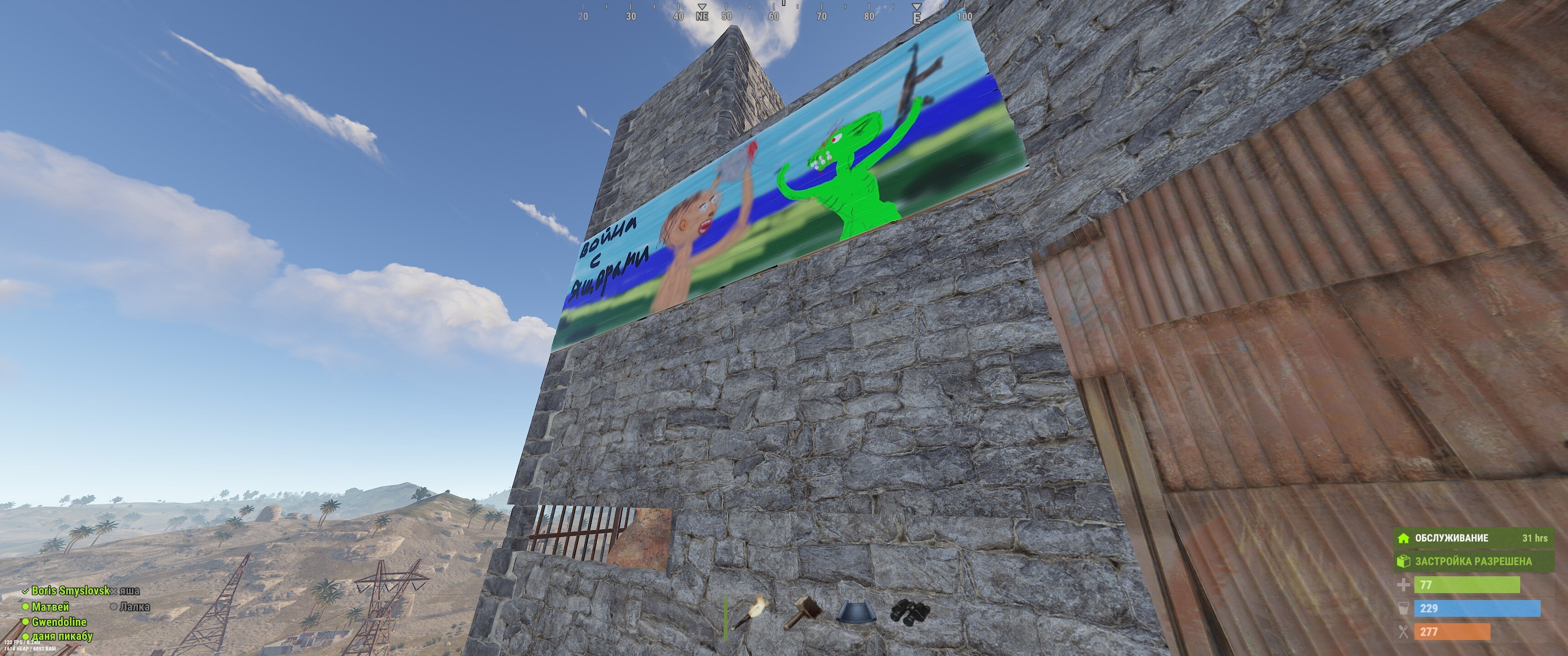 >>47355320 Удалил потому что без клана там нехуй делать. часов после вайпа офф. серверов: заходишь поиграть в соло, вокруг уже железные дома -этажные и оттуда выбегают + челов с автоматами и ебут меня с моим арбалетом в деревянной броне, когда я пытаюсь скрапа с бочек набить. Похуй на умеПрикинь, маня, а я не пью и не курюИ денег нихуя судя по тому что тебе дохуя кажеться Поди подливу теперь свою подтирай за собойПойду двухтысячной купюрой вытру, они особенно мягкие, не раздражают кожуние стрелять или что-то типа того, кого больше и у кого верстак круче, тот и победио, нужно просто стак побольше и бегать ебать и рейдить всех. Игра не о скилле.