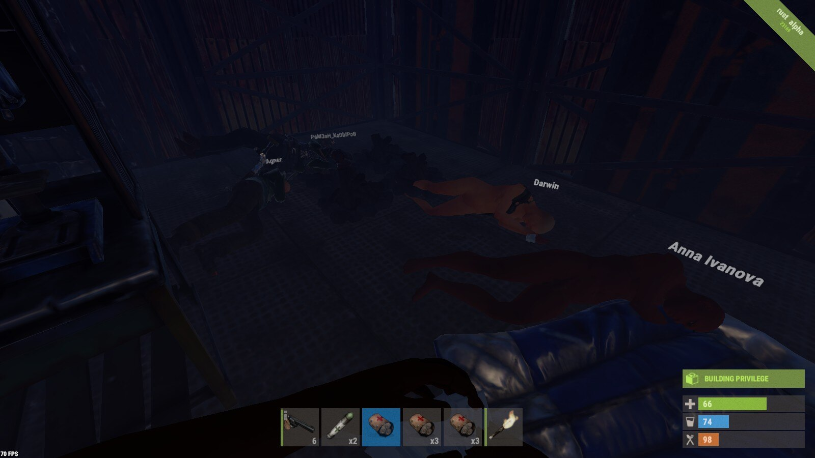 Удалил потому что без клана там нехуй делать. 10 часов после вайпа офф. серверов: заходишь поиграть в соло, вокруг уже железные дома 3-этажные и оттуда выбегают 3+ челов с автоматами и ебут меня с моим арбалетом в деревянной броне, когда я пытаюсь 50 скрапа с бочек набить.
