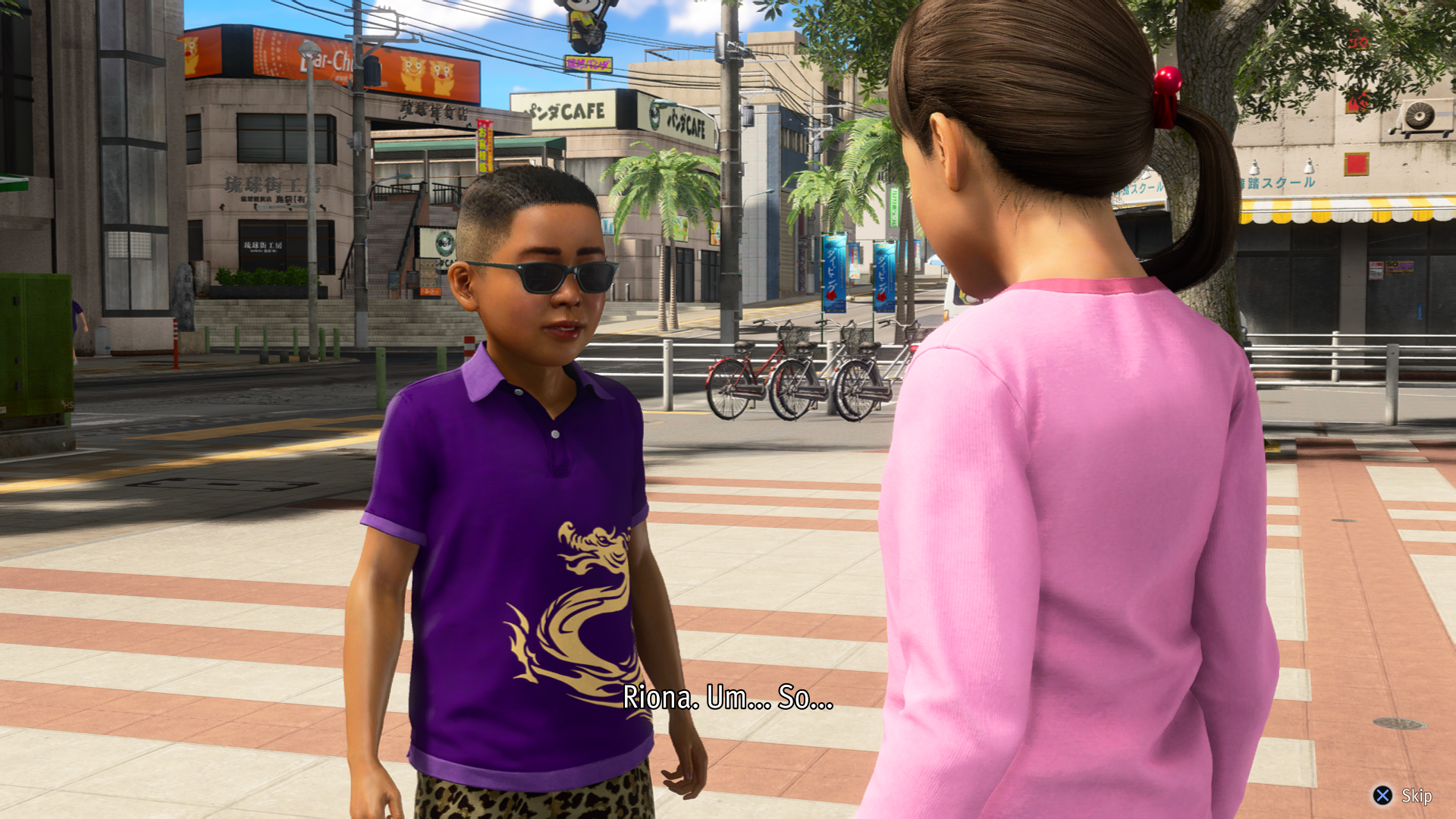 Лолблять, в прошлой катсцене и в драке с боссом был в новой окинавской одежде: зелёная рубашка, чёрные штаны. После драки произошла пупа и лупа и они зачем-то взяли одежду почти как в оригинале, по закатанным рукавам узнаётся что скин из шестёрки когда ты в Ономичи находишься. В оригинале Кирюха приходит в клуб в своём фирменном стиле а после драки уже сидит без пиджака и рукава спущены.