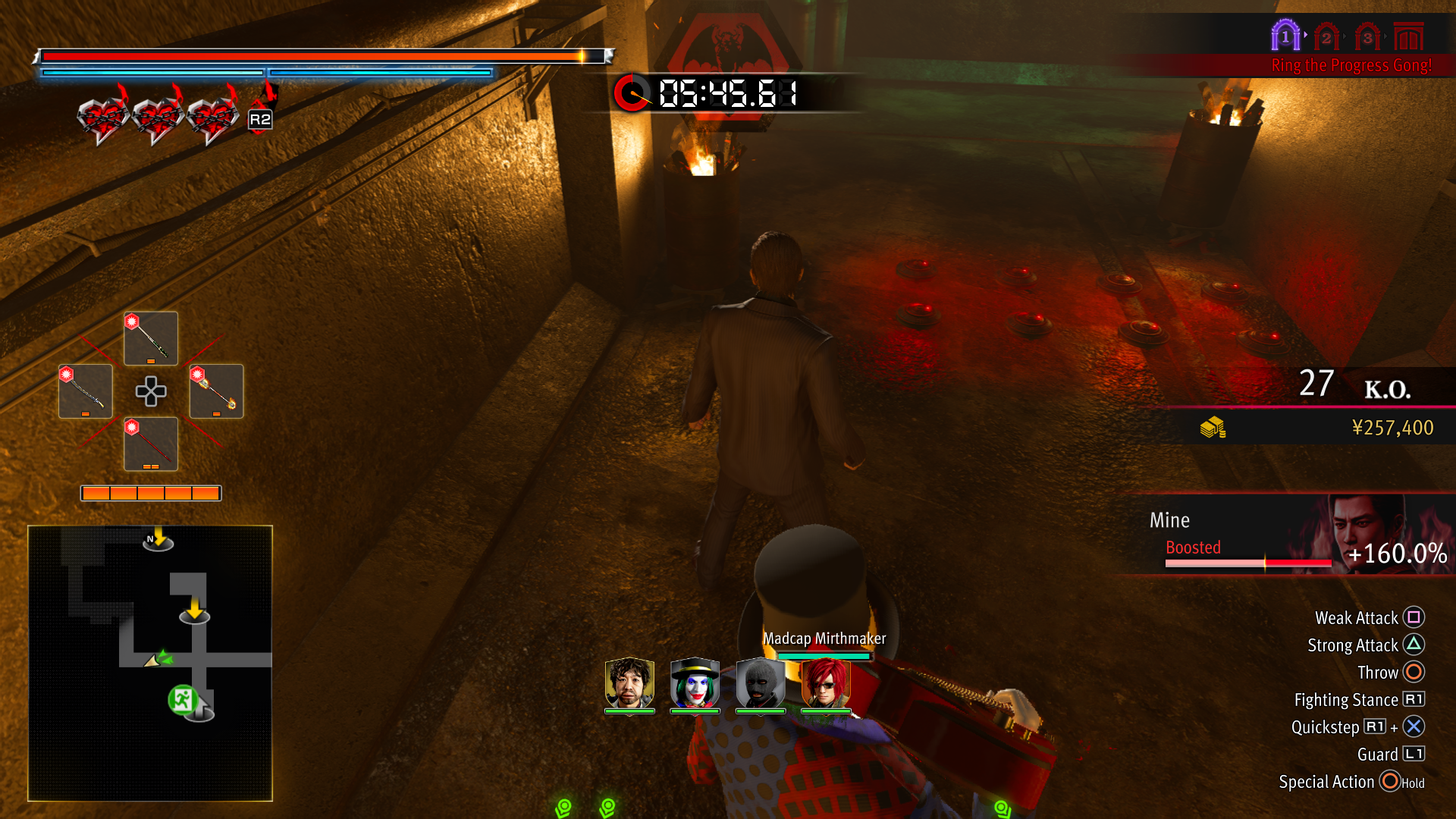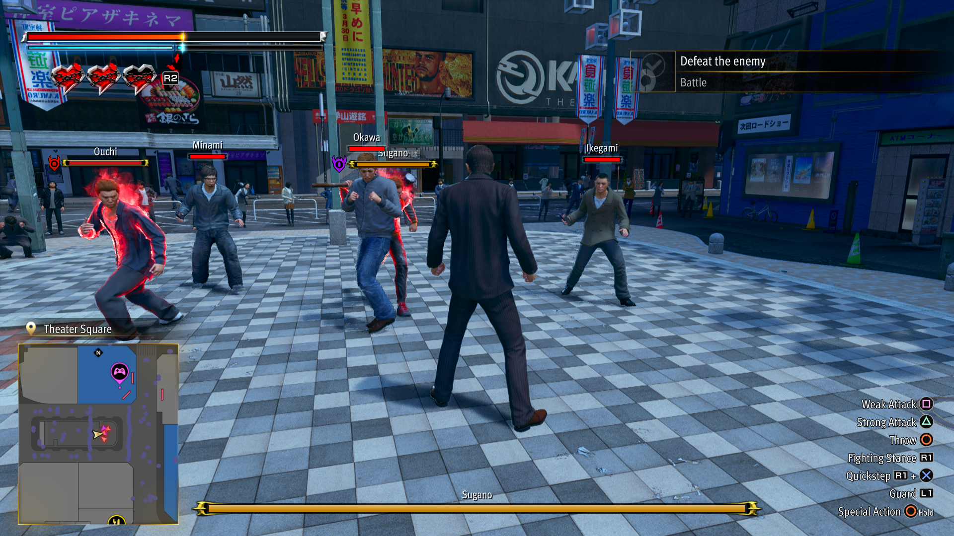 Также есть список беглых якудз, те самые The Reapers, всё как ещё было на Гаваях за Маджиму, Bounty которые, пиздить людей за денежку, вот только тут у каждого с самого начала боя ёбанная суперброня, можно её сбить если быстро накидать урона, как я понял она быстро восстанавливается так что если медлить то враг может весь бой в нём простоять, а так как когда они в суперброне особо комбо не сделаешь, даже в спину, пиздюль прилетит, так можно и полхп снять чтобы броню сбить, ну и хуйня. Есть также красные атаки, от них только быстро сайдстепать, иногда несколько раз, контрудара похоже нет, забавно было наблюдать когда я решил просто отбежать от такой атаки и чел секунд 10 бежал за мной размахивая битой.