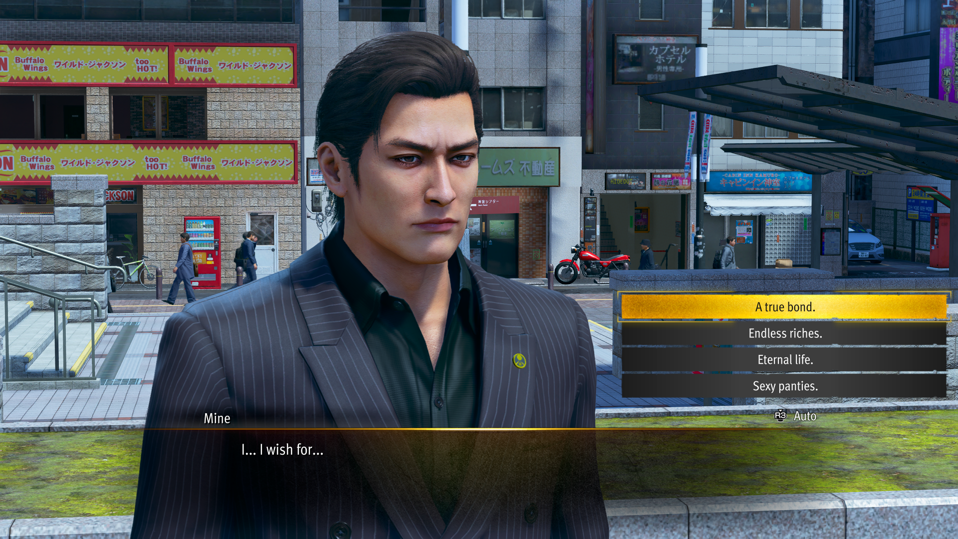 Единственное напоминание что игра про якудзу это последняя сцена после титров, вот так сука должно было быть всю игру, смехуечки в сабах оставьте, а то они хуитой тут получились с повтором всего что уже было в 8. Саб где шоу холостяк и эти 5 девок минато пиздец кринж, где смеяться, в каком месте этот жиробас комик в Японии непонятно, даже тян в ахуе с него были.