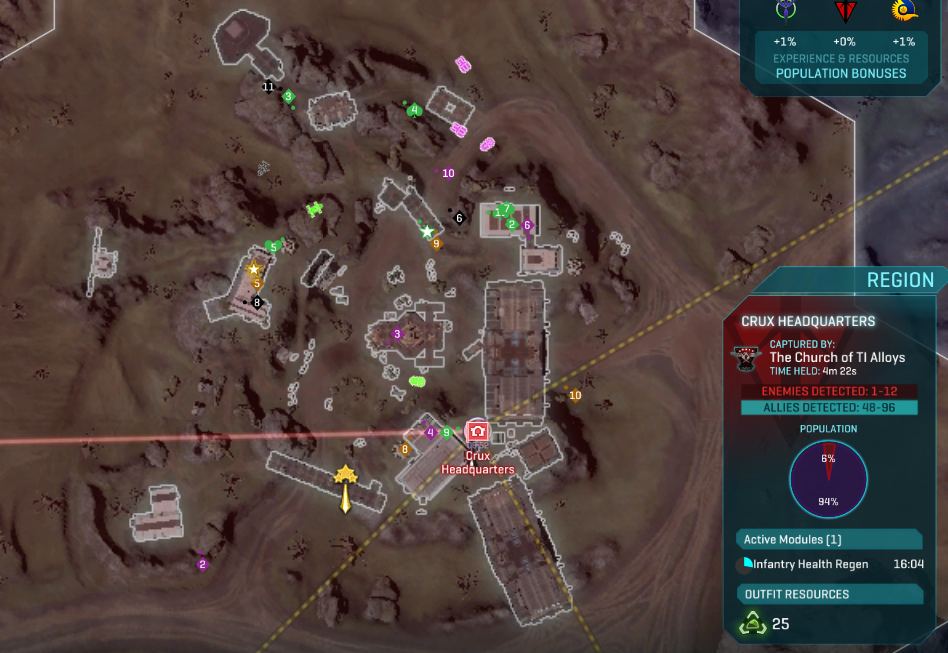 Если тебя убивают прямо на выходе из точки спавна или напротив враги не оказывают должного сопротивления, то снова советую открыть карту и посмотреть на соотношения сил в регионах. При наведении курсора на регион справа показывается примерное количество игроков и соотношение сил, иди туда где силы примерно равны и больше всего игроков.