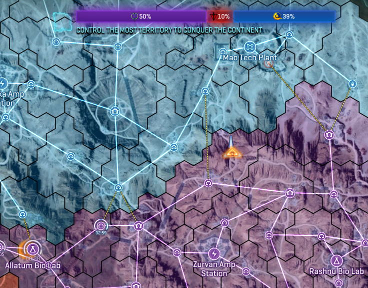 По началу планетка может быть противоречивым опытом, так как внезапно требует от игрока чтобы он почаще смотрел на глобальную карту. Если вокруг не происходит ничего интересного, то советую открыть карту (кнопка M), нажать на название континента (надпись сверху по центру) и тогда откроется список континентов. Пройдись по этому списку, посмотри какой из континентов мигает сильней всего и иди туда.