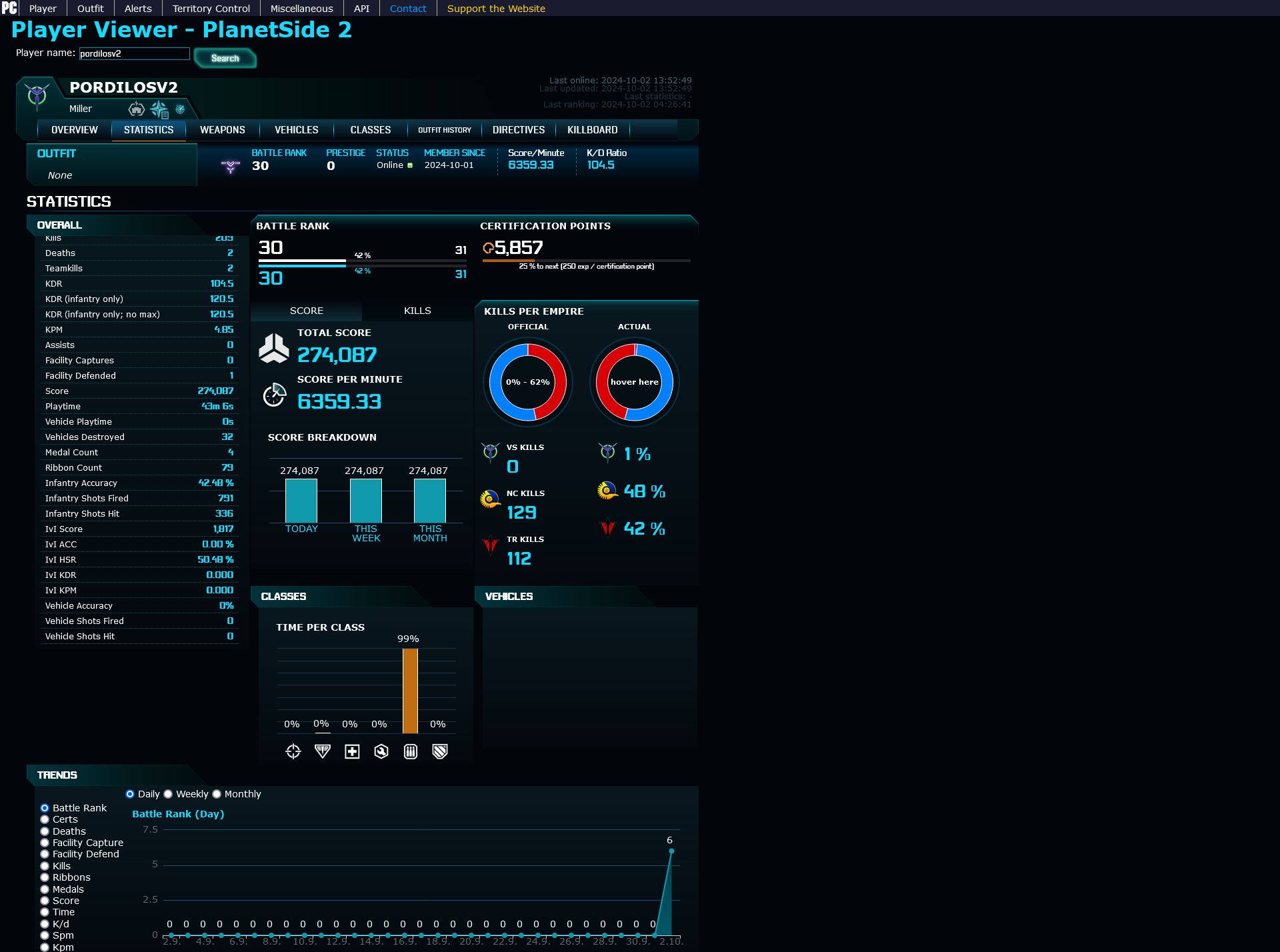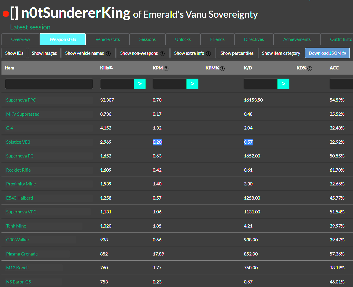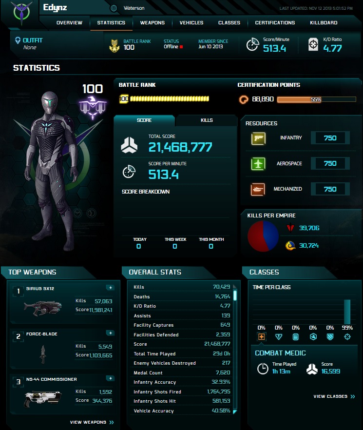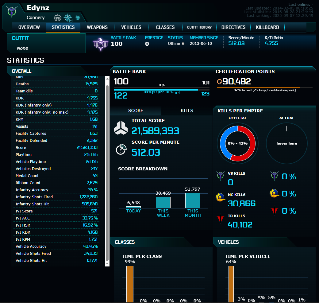https://planetside2.com/players/ — официальная статистика, лучше ей не пользоваться