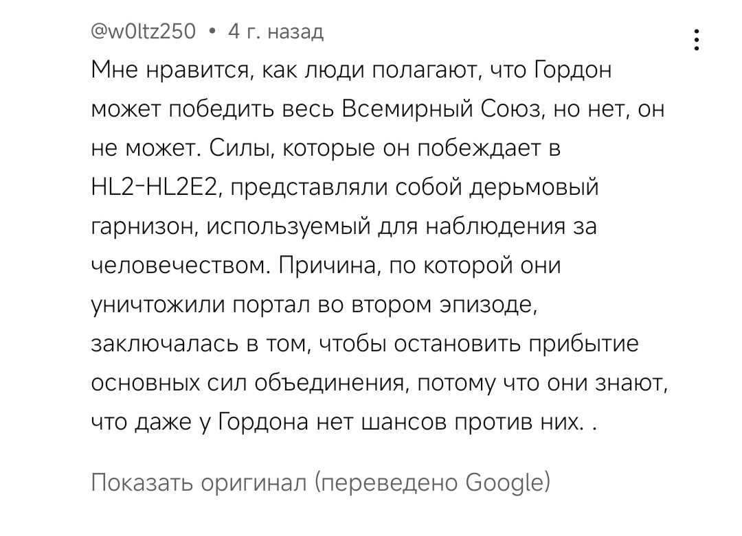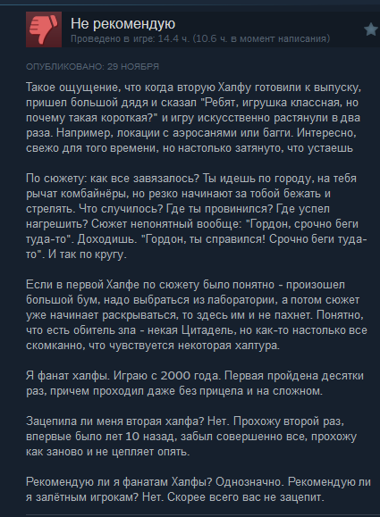 >в конце замыкается цепь межвременных скачкоу, что приводит сюжет к откату каскадного резонанса Но вот путешествия во времени с зацикливанием истории = практически гарантированный кал. Для иного исхода требуется очень, очень хороший навык писательства, а у Вальв, похоже, таких нету. Это настолько ящик ссанины, что даже для сюжета шутера слишком.