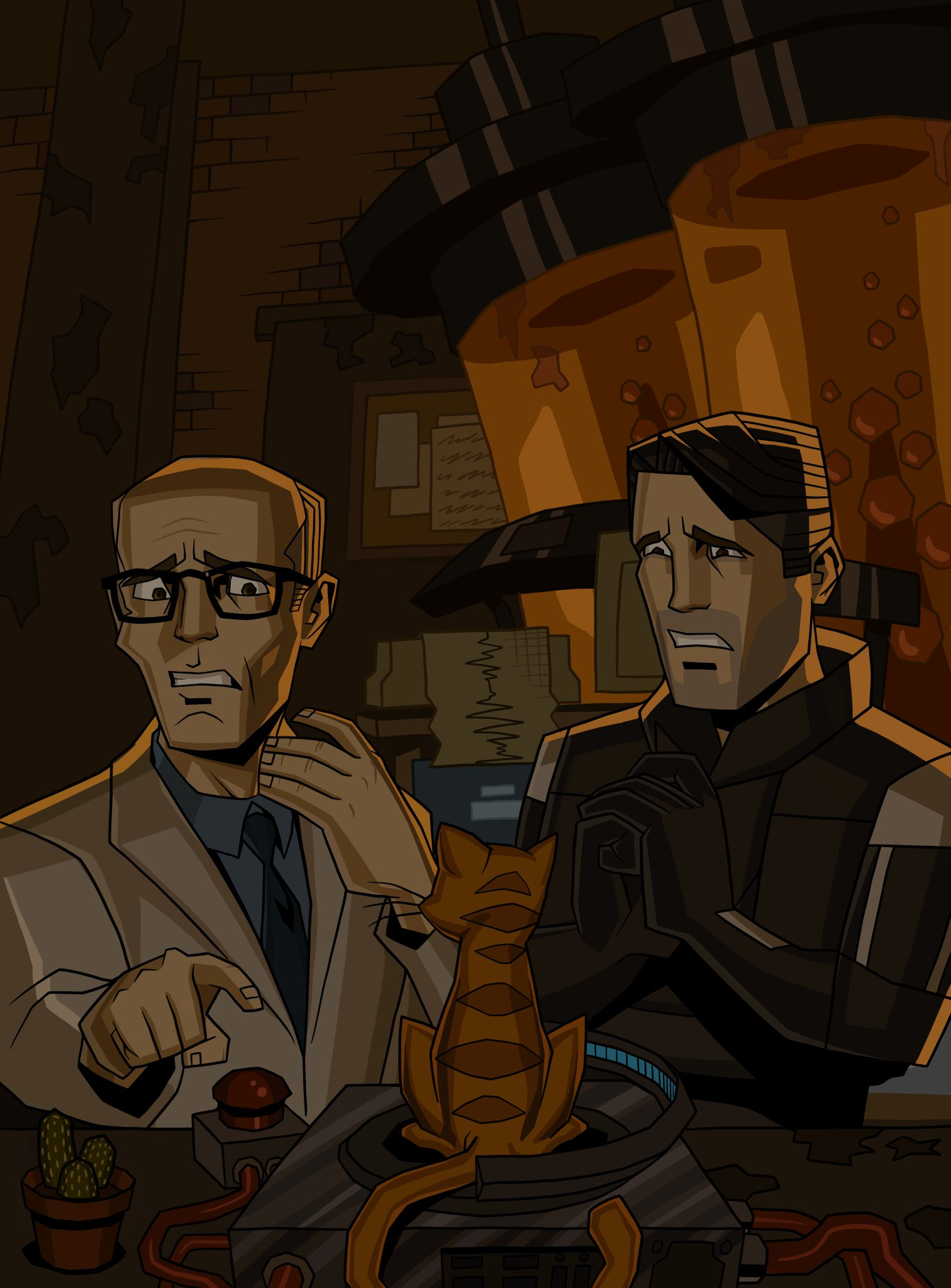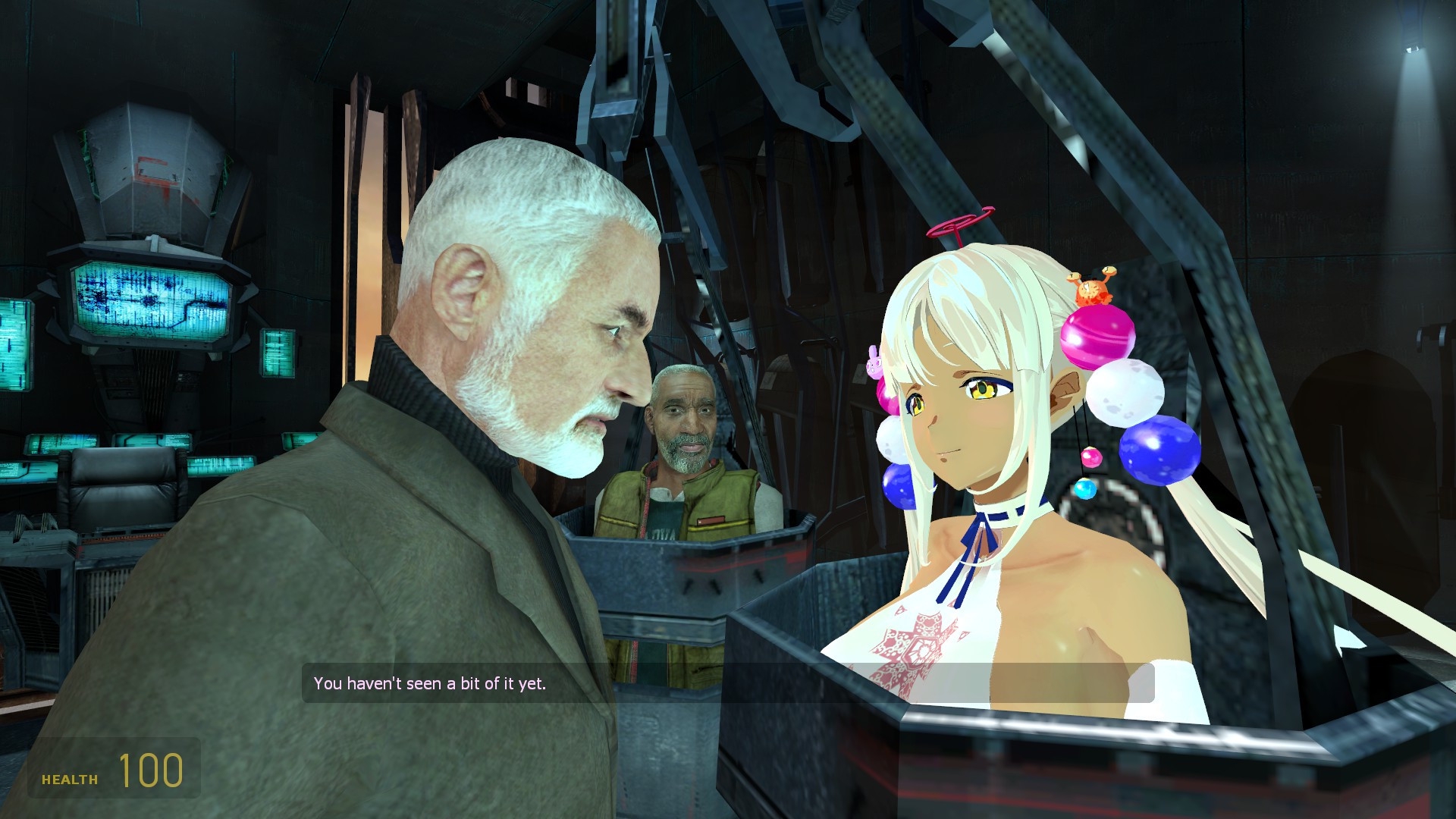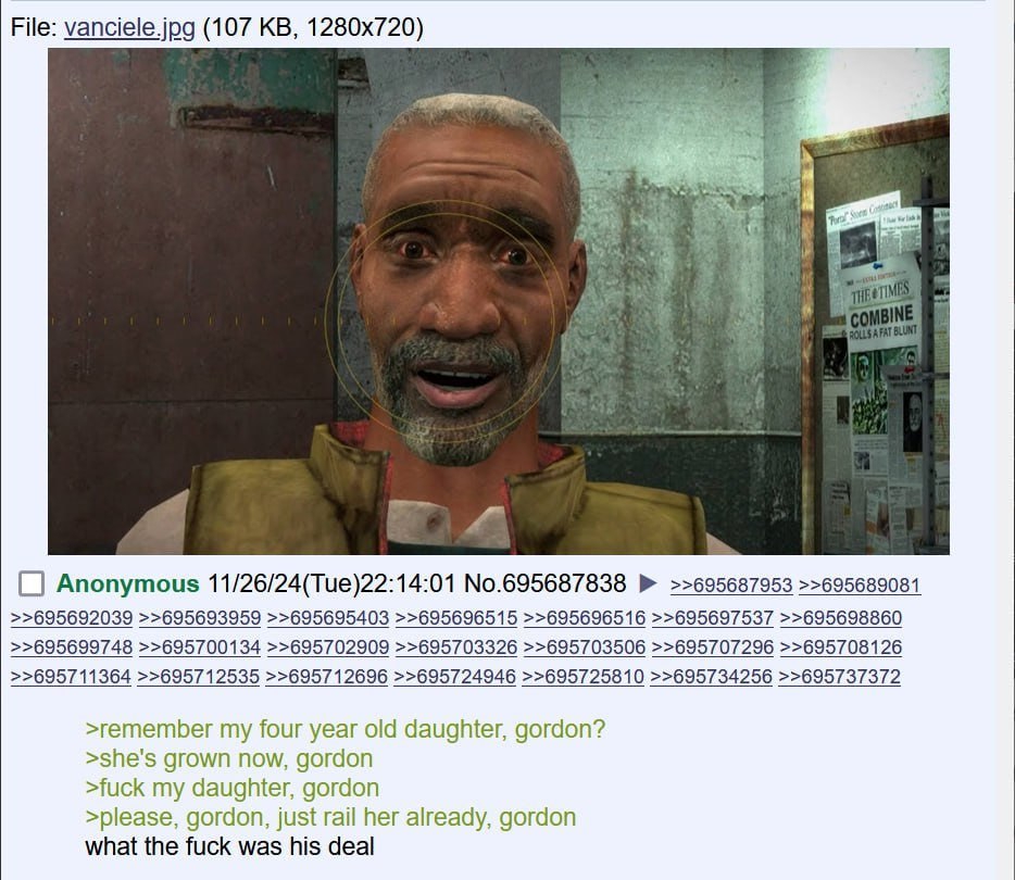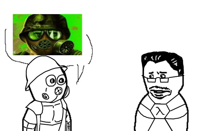 Ещё с первого прохождения одна ситуация вызывала недоумение: когда мы встречаем в каналах этого чела, тот говорит "радуйся, что они не тебя ищут, у того неудачника нет шансов", и возникает вопрос, а кого тогда? Или через его убежище титизены в хев-костюмах проходят так часто, что Гордона он никак не выделяет? Такое ощущение, что конкретно в этом месте фразы умудрились прописать в отрыве от контекста происходящего.