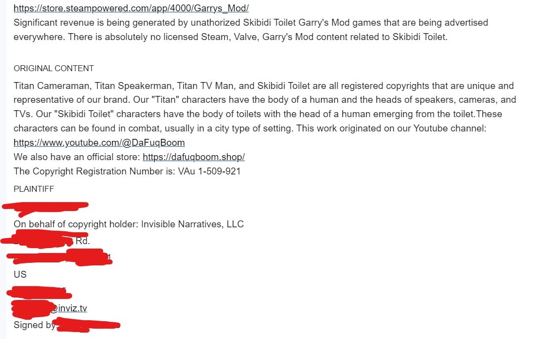 Контекст прост. Всё ровно наоборот: это Скибиди-туалеты создаются в Source Filmmaker на основе ассетов Valve, которая и издаёт Garry's Mod. То есть страйк должны кидать они.