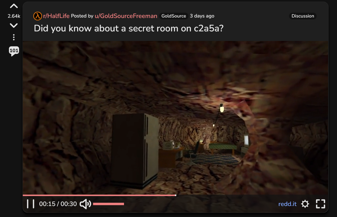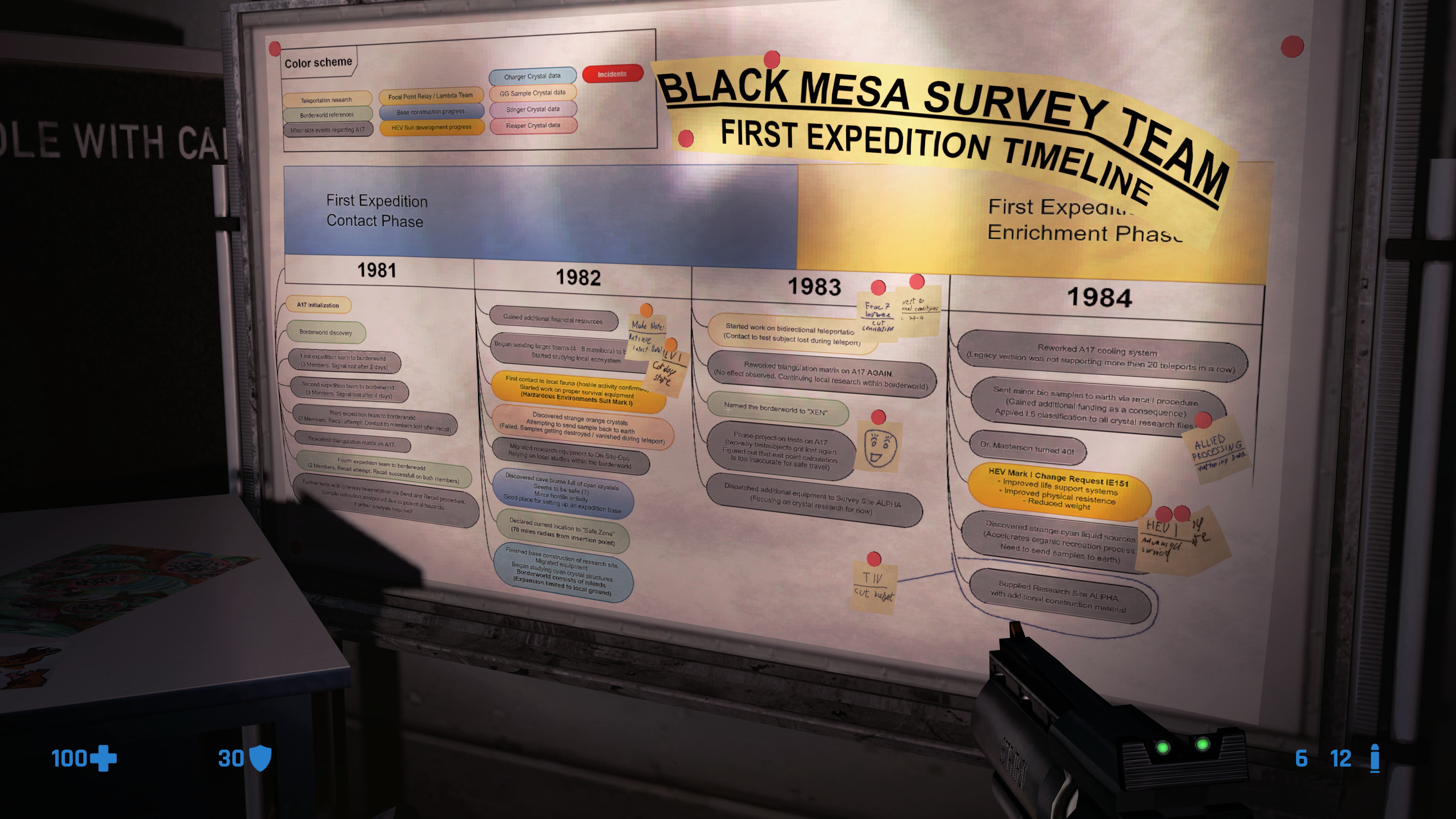 >>50334766 О, вот теперь намного легче, даже слишком легко как-то. 1)Офисы, конкретнее тот, в котором лаз на техническую лестницу к турельке. Ты смотришь из угла прямо на этот лаз. 2)Комната с хедкрабами и звуками Блэк Мезы, кто знает тот поймёт. 3)Я обнаружил, что урон холодом не отнимает здоровье, только энергию!