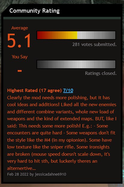 Не понимаю, отчего эту литерали васанку-солянку так обожают, хвалят и терпят геймплей, терпят духоту, терпят, что страница на моддь превратилась в пинтерестподобную видеогалерею, похоронившую трейлеры-тизеры на дне вкладки videos, терпят - прощая няшечке-японо-кореечке всё, за что другим модам ставят отрицательное ревью в стиме и 3 из 10 на МодДБ.