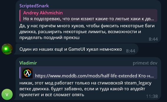>>48756214 Врятли сломают саму халву, это тебе не деревянный голдсурс. С другой стороны, зная вульву, этот апдейт наверняка сломает другие сурс-игры, по типу дод:с и кс:с. >>48754607 Авось пофиксят потерянную траву на хл2-картах, вернут нормальную физику рэгдоллам и накинут vscript. Возможно даже сделают нормальный туман в радиусе как в лефте. Ну, и самый маловероятных исход - 64 битный движок, как недавно в тф2. Ну, а если совсем уйти в маняфантазии то полный фикс хл:сурса.