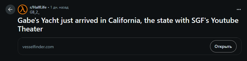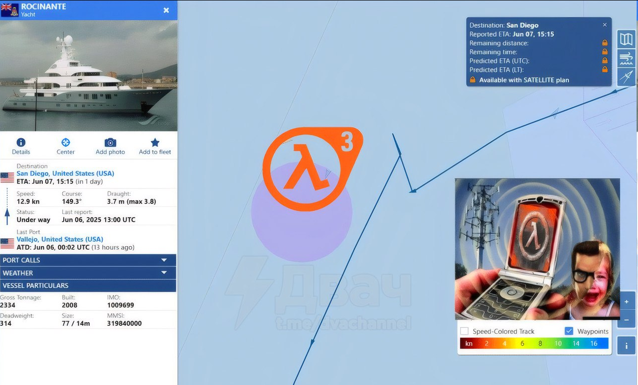 Что случилось: 🟠Яхту Rocinante, принадлежащую Гейбу Ньюэллу, отследили по геотегам. Она движется в сторону Калифорнии и буквально вчера была неподалёку от побережья – в районе Сан-Диего. Это всего в паре часов от Лос-Анджелеса, где проходит Summer Game Fest 2025; 🟠Гейб почти никогда не появляется на публичных мероприятиях. Поэтому его внезапное приближение к месту проведения ивента фанаты воспринимают как сигнал: он лично приедет анонсировать продолжение легендарной серии; 🟠Всё стало ещё интереснее, когда на навигационной карте заметили, что Rocinante сделала резкий манёвр, оставив маршрут в виде символа лямбды – логотипа Half-Life. Реддиторы восприняли это не как совпадение, а как прямой намёк: «Это оно»; 🟠Некоторые датамайнеры и проверенные инсайдеры тоже подлили масла в огонь. Они утверждают, что Half-Life 3 уже можно пройти от начала до конца, игра активно тестируется, а релиз запланирован на зиму; 🟠Summer Game Fest 2025 начнётся сегодня в полночь по московскому времени.