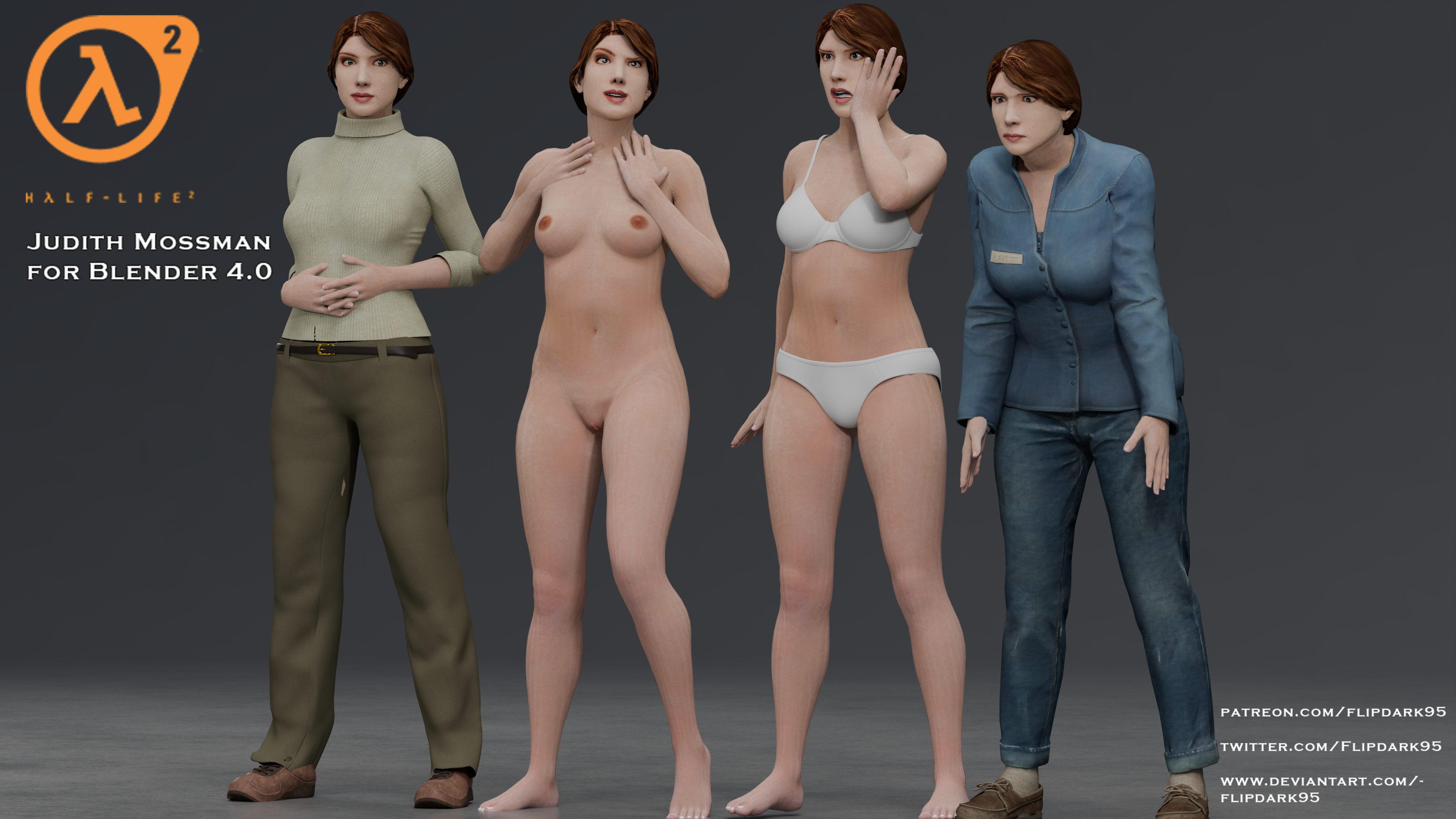 Когда-то сто лет назад анон предложил повторить пикрелейтед на Голдсорсе. Вот, взялся ковырять модельки. Как обычно ловил лютую панику от шизанутого Блендера. Копипиздил молодые головы из того нового Extended мода. А вот когда дошел до Моссман решил, что для милфы нужно чего-то позабористее и решил стянуть модельку с того дроч-сайта с SFM модельками. По скриншоту казалось, что он как-то ее омолодил. Моделька, однако, не работала в моем Блендере 2.78, пришлось юзать экстрактор текстур, потому что сама моделька мне и не нужна. Внезапно экстрактор выдал только часть текстур, а среди них были golden-gates.png. То есть я выколупал хайрез вагину Моссман, а ейного лица так и нк нашел. В итоге пришлось ставить поганый новый Блендер 4.0, специальный билд под Семерочку, открывать эту Моссман там и охреневать от того, что оно сожрало мои 4 ГБ памяти и еще 8 из файла подкачки. Это ж дичь какая-то, эти сфмеры больные какие-то. Ну, слово заслово, монтировкой по столу отклыл, сохранил текстурку в пнг, открыл, а там Дефолтная рожа Моссман расстянутая нейропарашей. В итоге плюнул, замазал морщины в фотожопе, да и все. А вот с Алухом веселее было: тут уже двадцатилетняя старуха в ХЛ2 против няшной лольки в носочках. Пришлось искать модельку-донора, но все равно мордочка не достаточно няшной вышла. Кстати, кто угадает модельку-донора Алуха получит арт с голыми Джиной и Коллет в ЛС. А потом меня окончательно задолбал этот Блендер, и решил отдохнуть. Но надо доделать.