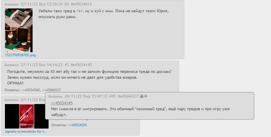 >>48012565 Полтора шиза все не могут отойти от сигналиса в более общую тематику, а просто убить мертвый труп оригинальных тредов не хотят. Вот и выходит уже второй тред бреда с хуй пойми какой тематикой на пол шишечки, понятной только местным трансошизикам на самоподдуве. Зоонаблюдаю уже второй тред непринятия.