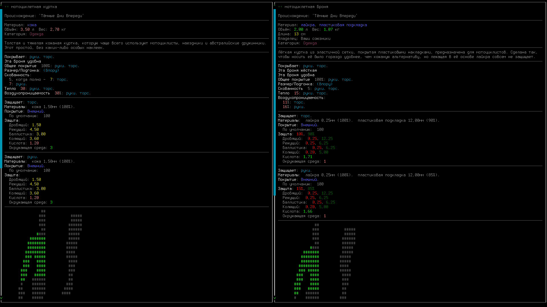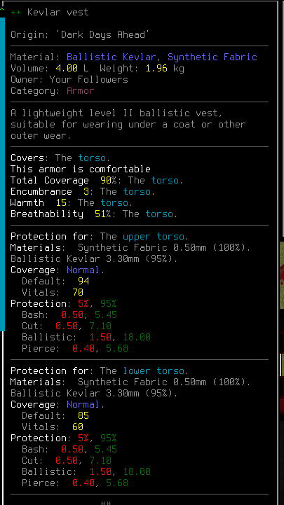 >>48107329 > Я кстати удивился, что броник сам по себе не жёсткий предмет, всё-таки это не просто тканевый чехол для плит. Не совсем тканевой, там кевлар еще, но вообще гибкий. > "//": "Based on US Army MTV", > "name": { "str": "US ballistic vest" },