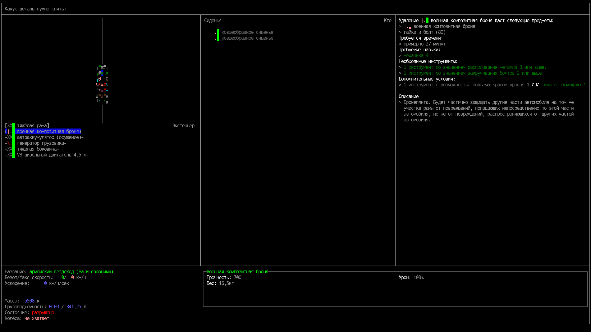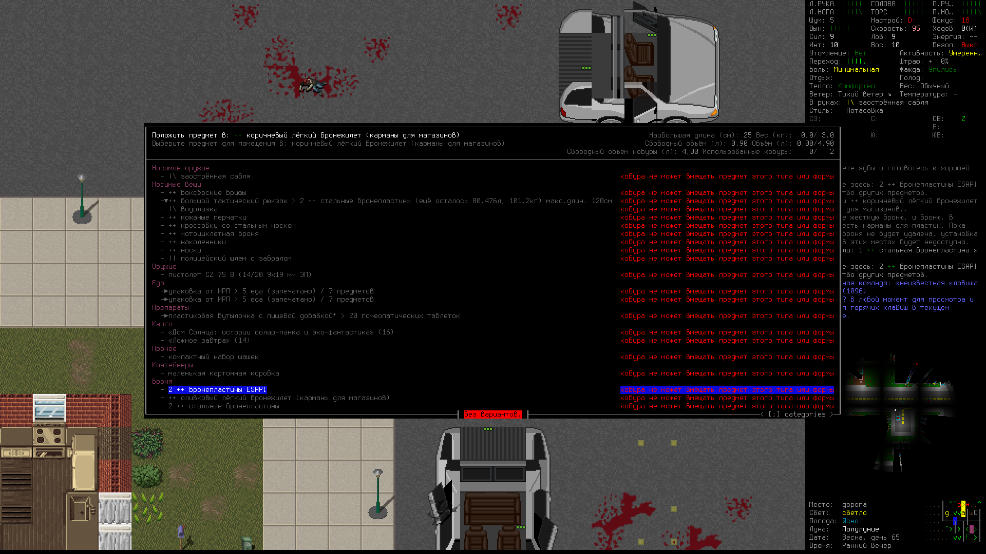 >Модпак для DDA: https://github.com/Kenan2000/CDDA-Structured-Kenan-Modpack Эти моды работают? Некоторые из них обновлялись три года назад. Если встать на ящик в машине начинаешь получать урон - скованность и теснота, которая не проходит даже после того как вылез из машины. Есть возможность отключить это?
