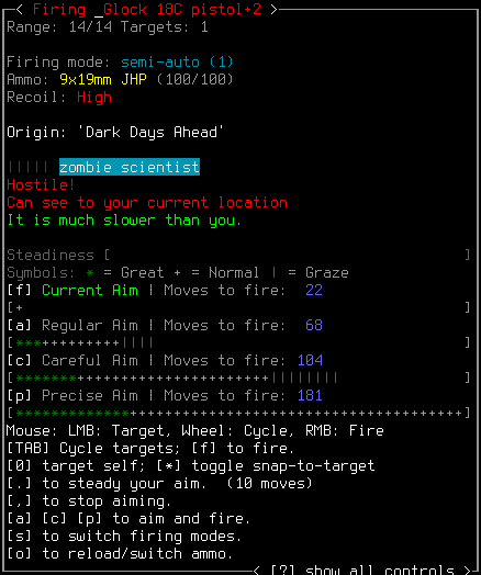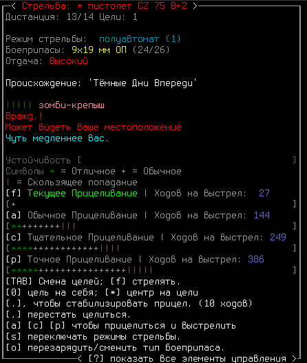 Немного придрочился к этой механике стрельбы, контрить толпу, жить можно, но дистанция все равно смешная, 18 клеток у дробовика. У винтовки под 30, но смысла немного. И прицеливание занимает 2-6 секунд, пик 1. У нпс еще можно поучиться навыкам.