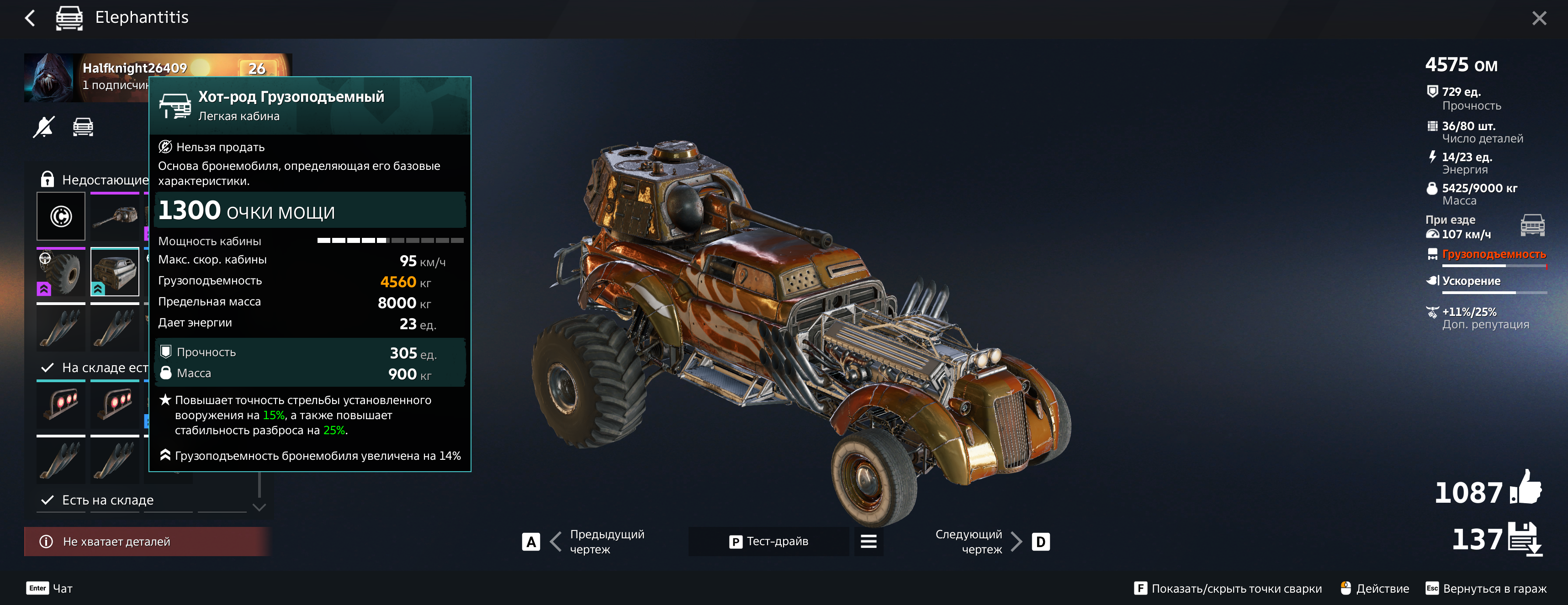 >>50570799 >Ты ставишь медленную тяж танковую кабину, но хп не собираешь Да как не собираю, я же кучу структурных деталек поставил, 2200 хп. Это мало?