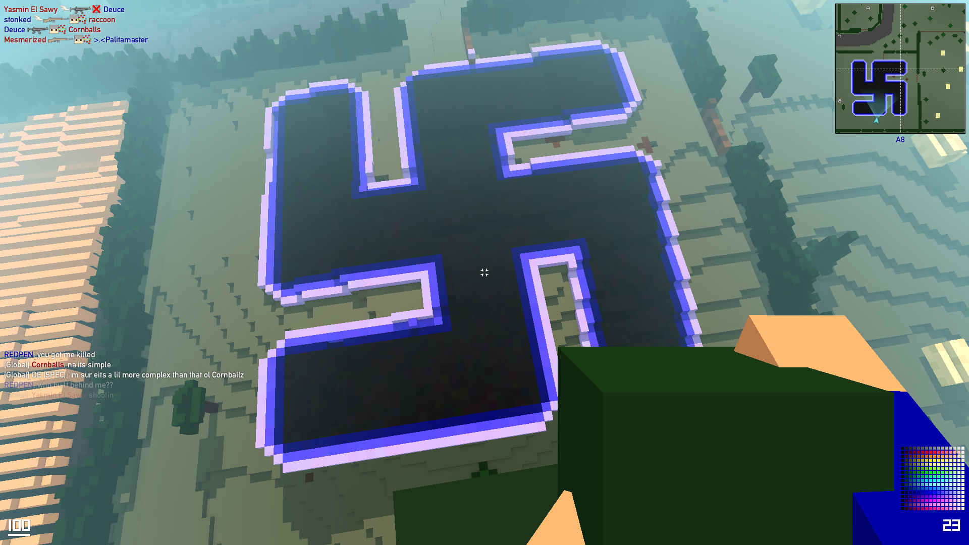 Классная игра, я даже для неё в детстве два текстур пака сделал: один пиратский, где база это корабль, а флаг это карта, и один зомби, где флагом вроде оторванная голова была, остальное не помню. Модераторы у вас какие-то, трэнифагготы, охуеть.
