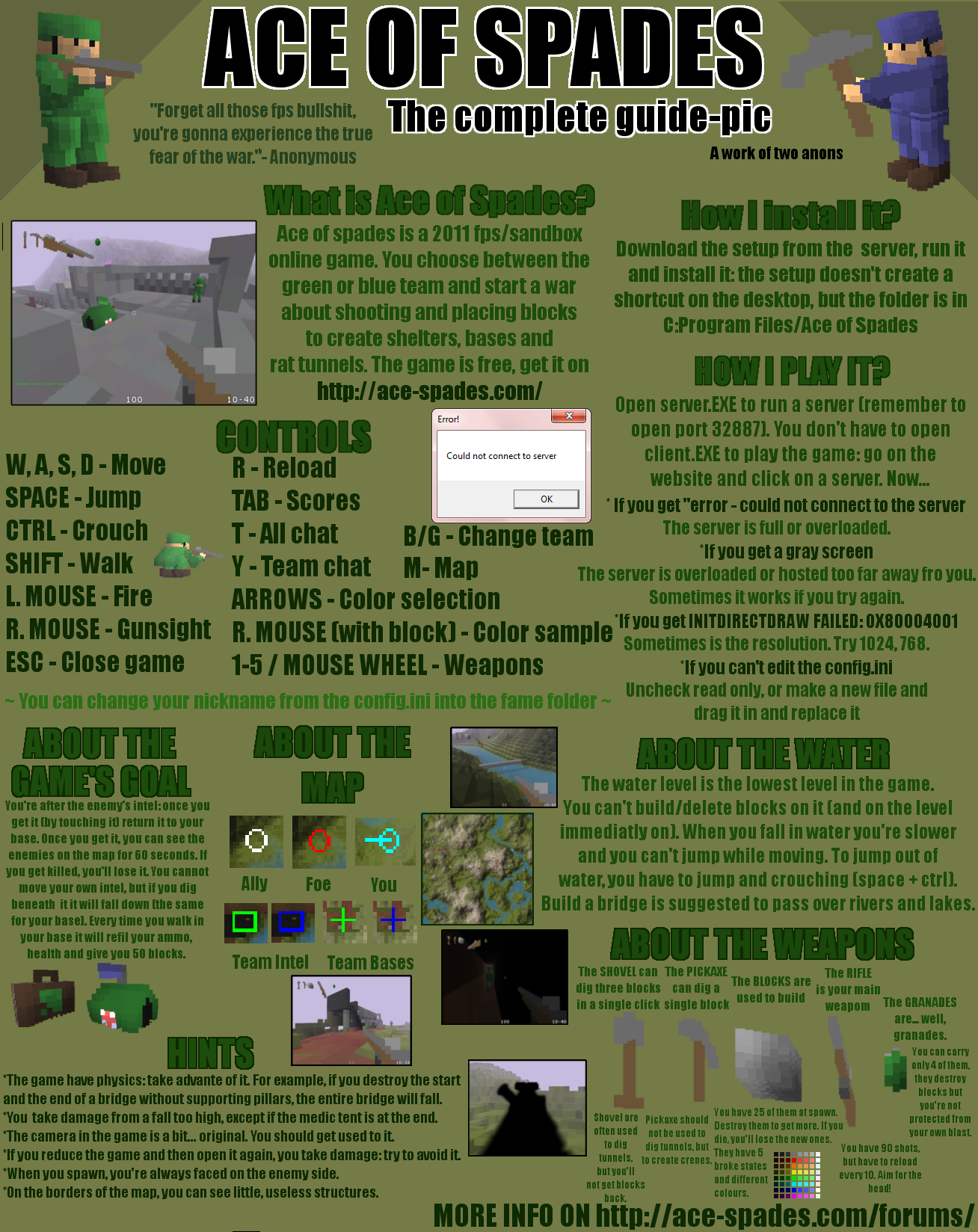 Ace of Spades - это мультиплеерная игра с воксельной графикой. Шутер от первого лица в сеттинге первой - второй мировой войны. Без регистрации. Анонимно.