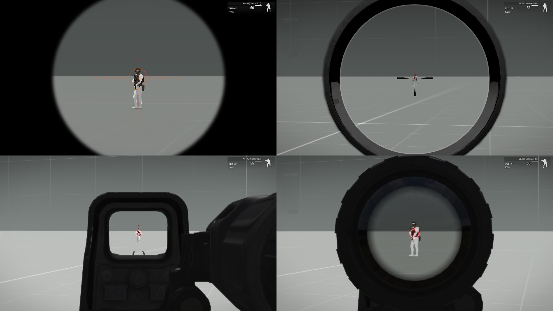 Ну что сказать, видно прогресс. В тройке прицелы ну такие себе. Ну то есть зум у них есть но дальность прорисовки мира не позволяет чувствовать себя комфортно. Смотришь на человека в прицел а он наполовину в текстурах провалился.
