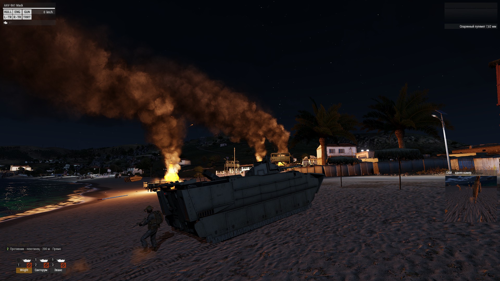 К счастью с 10-ой попытке мне посчастливилось наткнуться на самоходку которая ездить не могла по причине отсутствия топлива но зато был полный боекомплект. Соединившись перед этим с выжившим отрядом из трёх таких же бедолаг-американцев я посадил одного из них на место стрелка. Используя эту артиллерию удалось прорваться к небольшой пристани и угнать надувную моторку. Чувака в самоходке пришлось конечно так же цинично бросить на произвол судьбы, ну да это война - и не такое бывает.