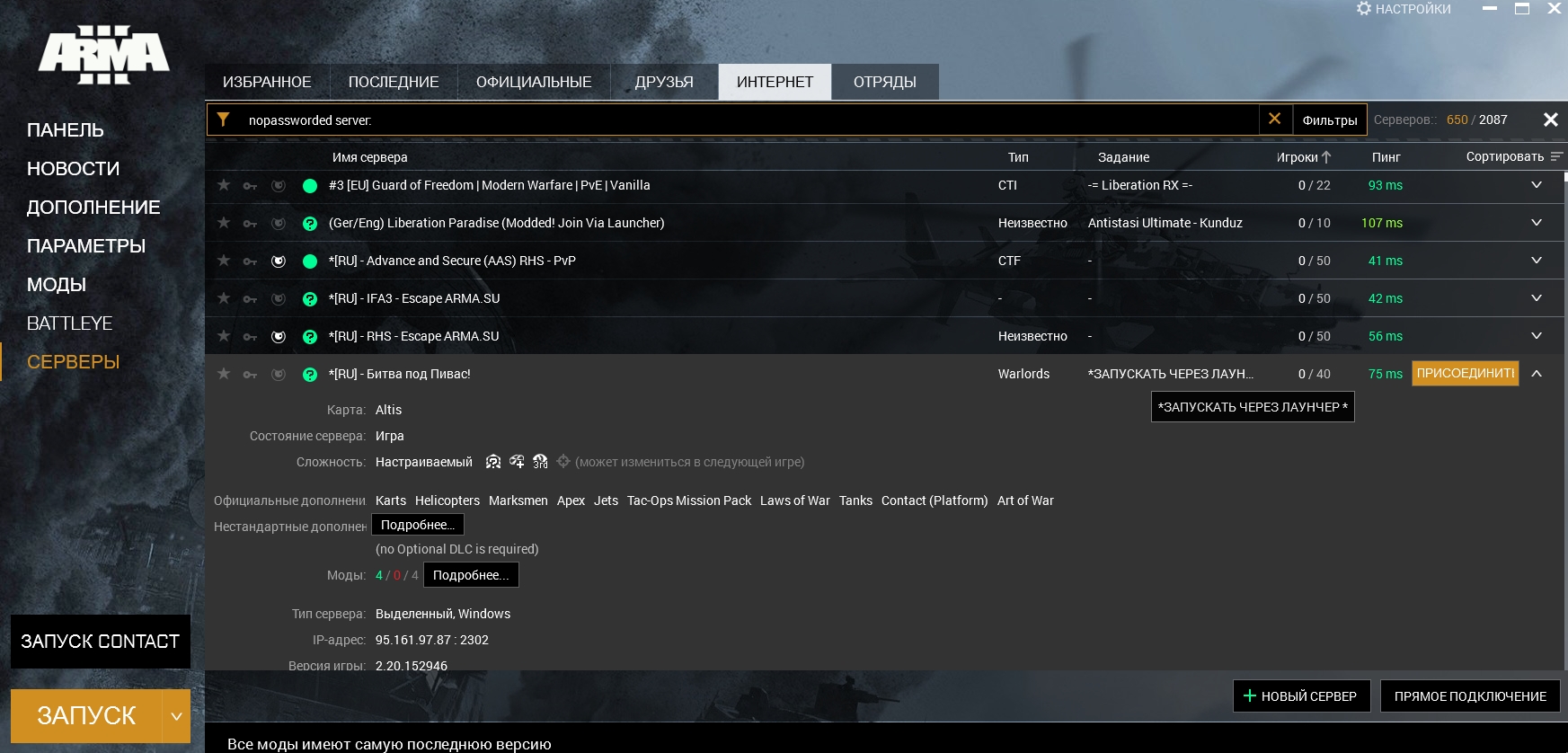 Посоны, в царя кто играет вообще? Полюбас же двачеры есть, там два серва RHS и штук 5-6 ванилы и все забиты.