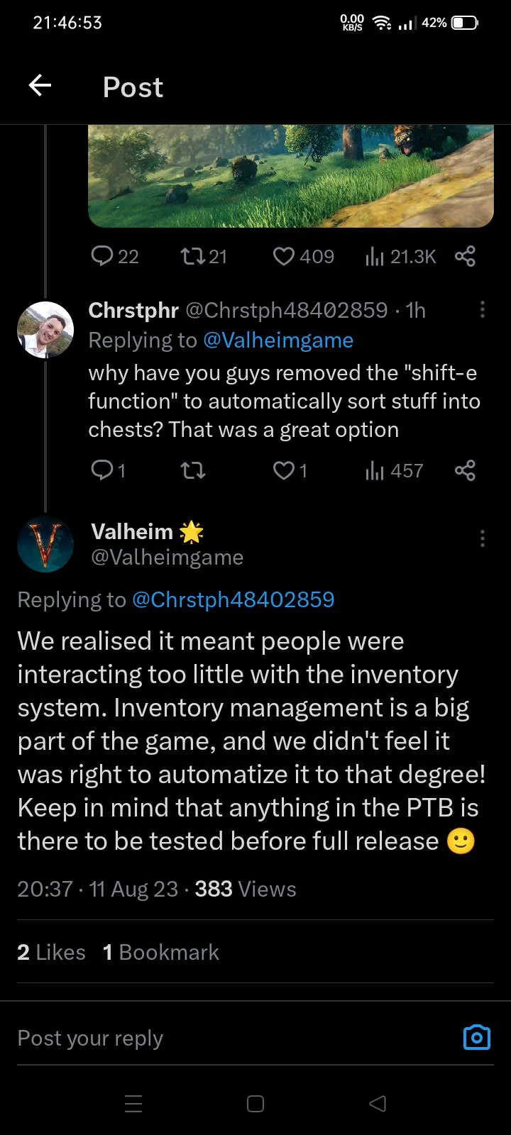 Актуальное обновление: "Пепельные земли" • Трейлер: https://www.youtube.com/watch?v=XSVbXgBJIuI • Описание: https://store.steampowered.com/news/app/892970/view/4199120329650080822 В ожидании небольшой обновы "Болотная ведьма" • Трейлер: https://www.youtube.com/watch?v=lQiLPwV_8sY • Описание: https://store.steampowered.com/news/app/892970/view/7514910232818862414 Полезные ссылки • Купить: https://store.steampowered.com/app/892970/Valheim/ • Вики: https://valheim.fandom.com/ru/ • Генератор карт: https://valheim-map.world/ • Моды: https://thunderstore.io/c/valheim/ • Инструкция по установке модов: https://www.youtube.com/watch?v=gsoj_Md7mao&t=20s • Рекомендуемые моды от анона: https://pastebin.com/raw/L5vQUCrj Также есть сервер от анона для анона • Имя: 2ch_vg_valheim • Адрес: 31.129.103.254:2456 • Пароль: 228228228 Прошлый тред: