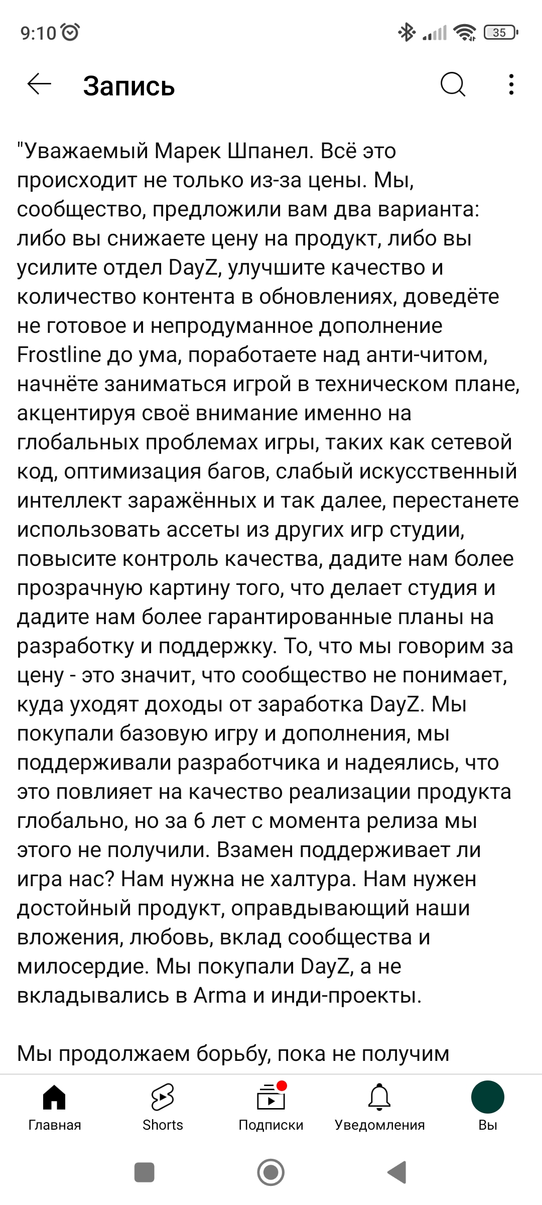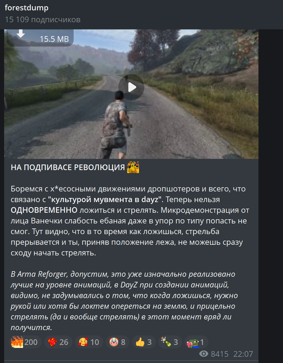 YSSV: Сейчас параллельно монтажу помогаю Дампеку записывать выживание. И скажу, что пока сидел последние пару месяцев в монтажке, в игре будто бы произошло нашествие просто конченых уебанов. Я прекрасно понимаю, что началось это не сегодня и не вчера, видимо, очень везет на них, и играть просто отвратительно, все насмешки, которые были над киберспортивными серверами с возможностью на них мунволкать, дропшотать, куешить и прочие уебанскиепрелести, стали реальностью для обычных серверов. По мимо того, что этим говном занимается огромное количество игроков, так и контентмейкеры не отстают, уподобляясь в нормализацию этого говна. А видя, какие потребности у сообщества, всё больше серверов делает уклон в калоедство, поощряя подобный геймплей и никак не ограничивая животных. Фрагменты на видео, кроме последнего отрезка, это одна и та же ситуация и один и тот же человек. И вот у нас с друзьями возникла дискуссия: — можно ли банить подобных людей? Например, в рамках вашего взгляда на это. — если можно, то по какому пункту правил? — если такого пункта правил не существует, то как оно должно звучать? — и стоит ли вообще бороться на уровне сервера с подобными животными? Возможно, если мы не одни такие ебаныеворчащие деды, не выкупающие за крутость пойти под фонк «разьебатьдропшотая пару терпил на сервере», ваши сообщения о том, как вы к этому относитесь на самом деле, могли бы помочь начать двигаться в сторону осуждения подобного геймплея со стороны игроков, а со стороны админов и серверодержателей перестать поощрять или закрывать глаза на таких игроков. Наверное, слишком жирно говорить о какой-либо массовости, но хотя бы в рамках одного проекта серверов. Я понимаю, что этим должны заниматься разработчики, но такое на северах видеть совсем не хочется.