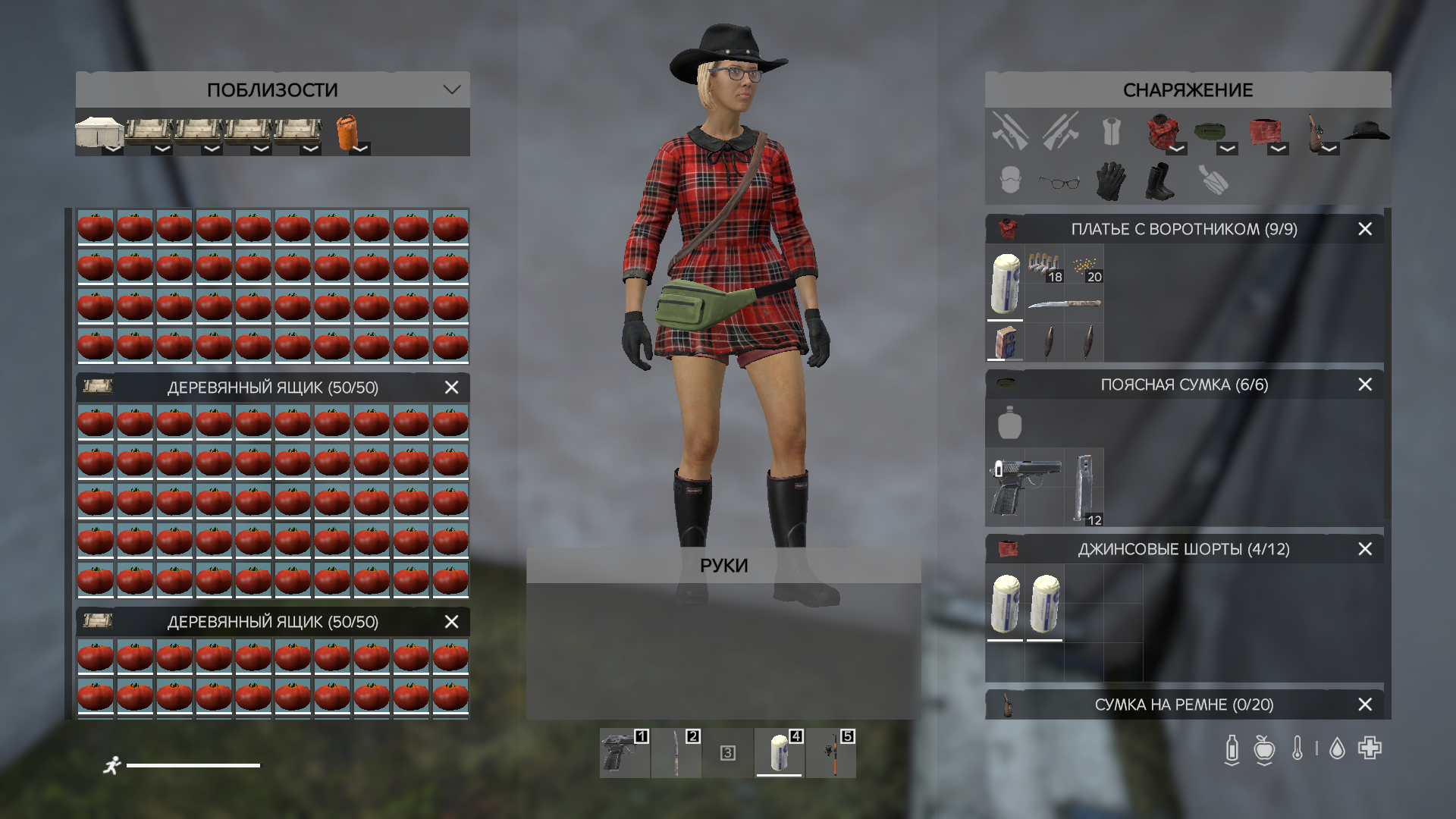 Ставлю 10-15 ящиков в стак, один полностью набиваю патронами. 2 под еду и воду +1 под химзащиту. Остальные под оружие, броню и пнв.