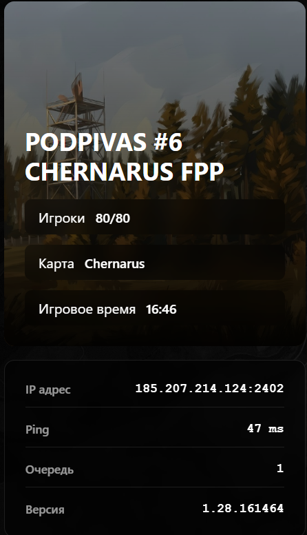 Из серверов, которые смело можно советовать - Подпивас. Не смотря на отталкивающее название это пожалуй самые адекватные сервера во всем ру-сегменте, где ты не вляпешься в колхозный чмодинг, цельнокиберкотлетное комьюнити и прочий гной Дейза.