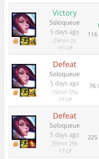 поч в дотц дают +25 -25 каждую игру а в лоле система которая бьет тя по голове за лузстрики делая невозможным ап после определенного момента но при этом вывалиться из лиги тоже невозможно и поэтому в последнем дивизионе каждой тупа черви ебанные копошатся которые знают что за вин им даст 12 лп а за луз снимет 36 и поэтому они даже не пытаются не быть уебищами